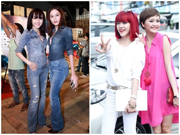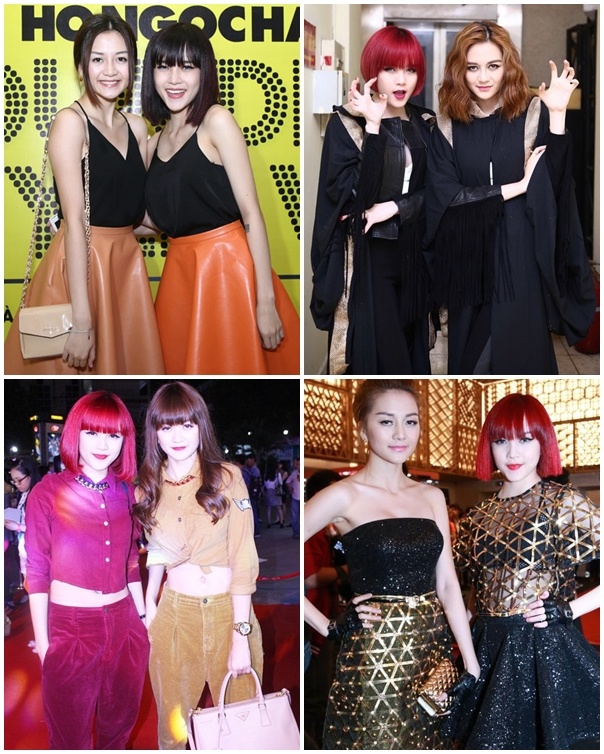 | Hình ảnh đa phong cách của Thiều Bảo Trang. Ngoài trang phục gợi cảm, cô còn yêu thích sự nổi loạn với những kiểu mốt lạ mắt. Dù không nhận được sự ủng hộ từ fan của giọng ca Cơn mưa ngang qua nhưng nhiều ý kiến nhận xét, Bảo Trâm đồng điệu về gout thẩm mỹ với người yêu. |
