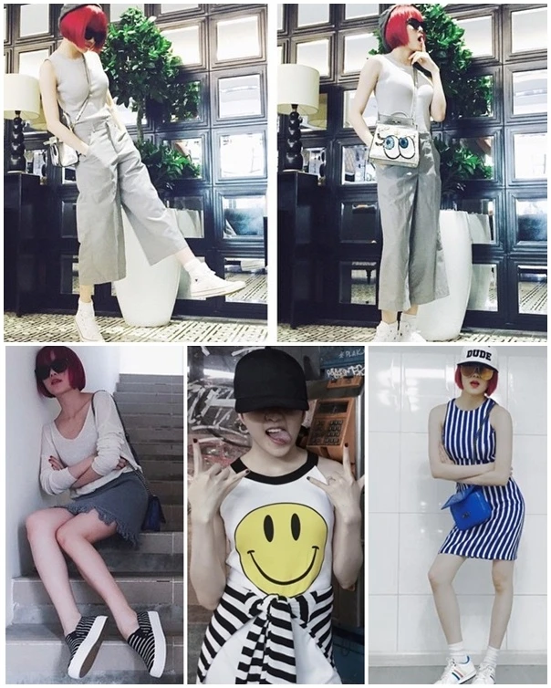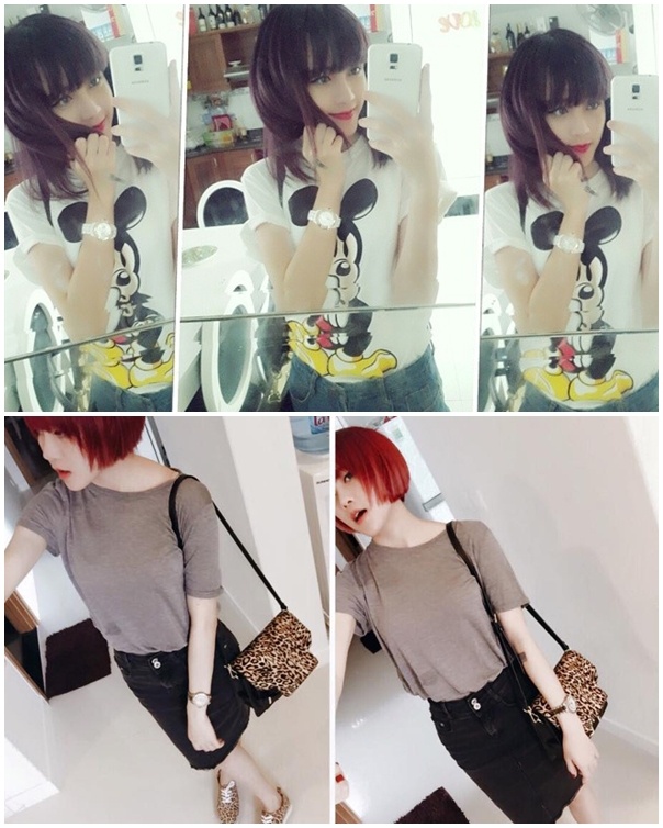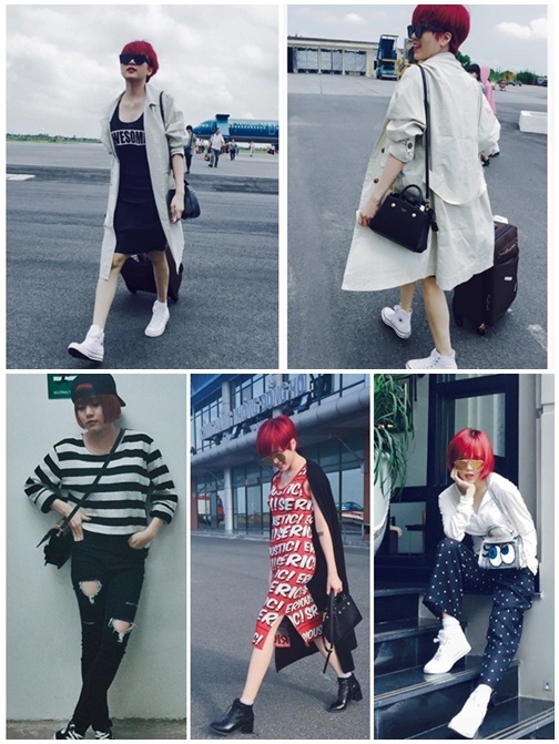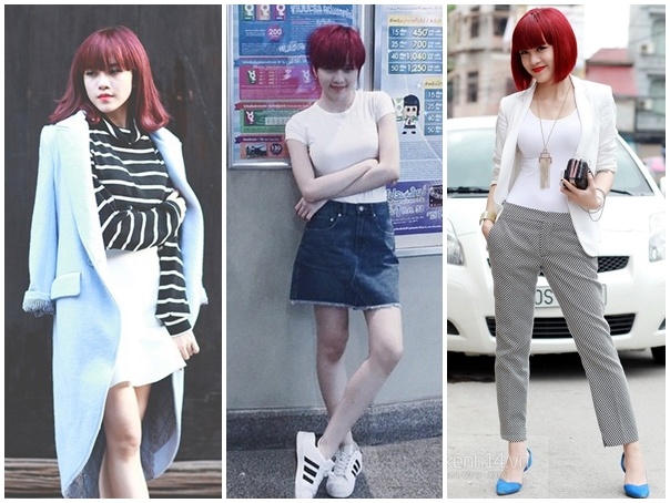Nữ ca sĩ lăng xê thành công loạt xu hướng quần lửng họa tiết, chân váy denim chữ A, áo vest màu pastel ăn nhập mái tóc nhuộm đỏ. Nhiều nhận xét cho rằng, bạn gái và Sơn Tùng có chung sở thích nhuộm tóc màu nổi.