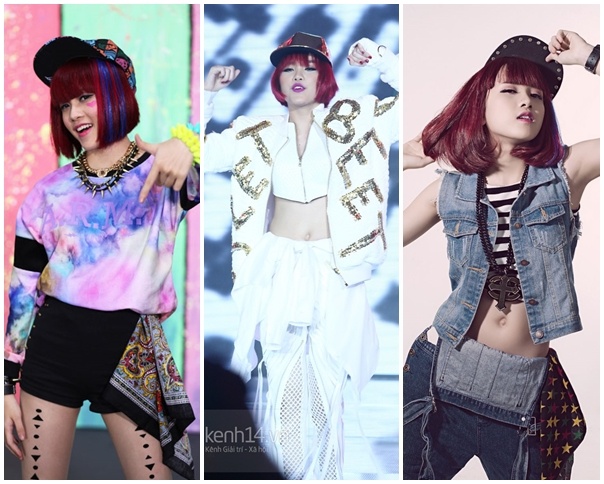 Nữ ca sĩ vừa thay đổi kiểu tóc tém gọn gàng, mạnh mẽ, phù hợp hình tượng nhóm nhạc Bee.T đang theo đuổi (ảnh trên). Thiều Bảo Trâm sở hữu thân hình cân đối, làn da trắng và gương mặt ưa nhìn. Nhờ đó, người đẹp 9X dễ dàng ứng dụng nhiều phong cách đang hot.