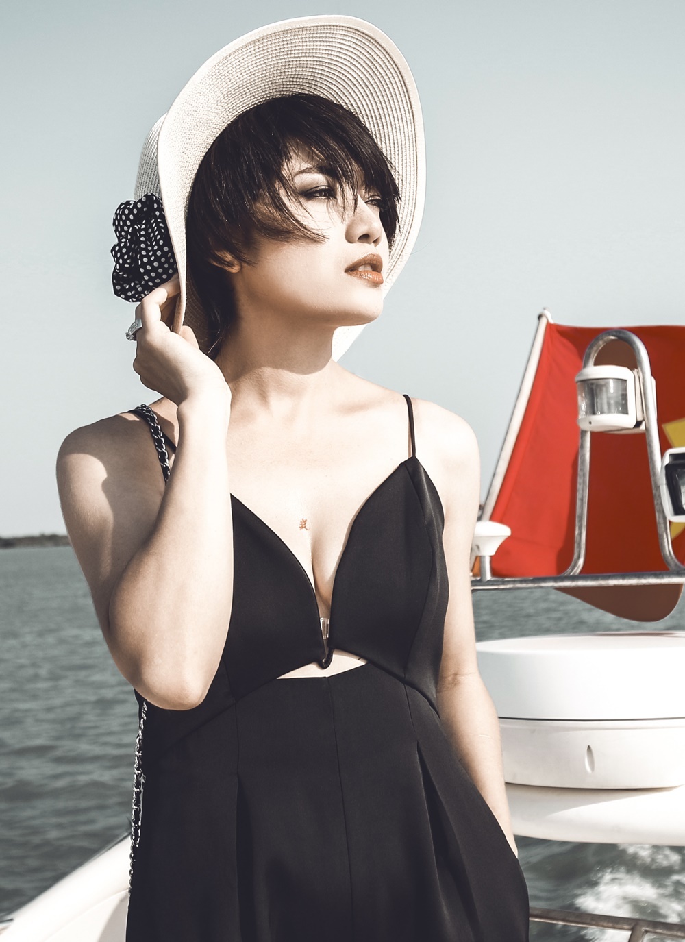 Bộ ảnh mới của Tinna Tình được thực hiện trên du tuyền xa xỉ. Bên cạnh trang phục mùa hè sexy, tình cũ đạo diễn Charlie Nguyễn chọn kiểu tóc tém ngắn cá tính, ăn nhập phong cách kiêu sa.