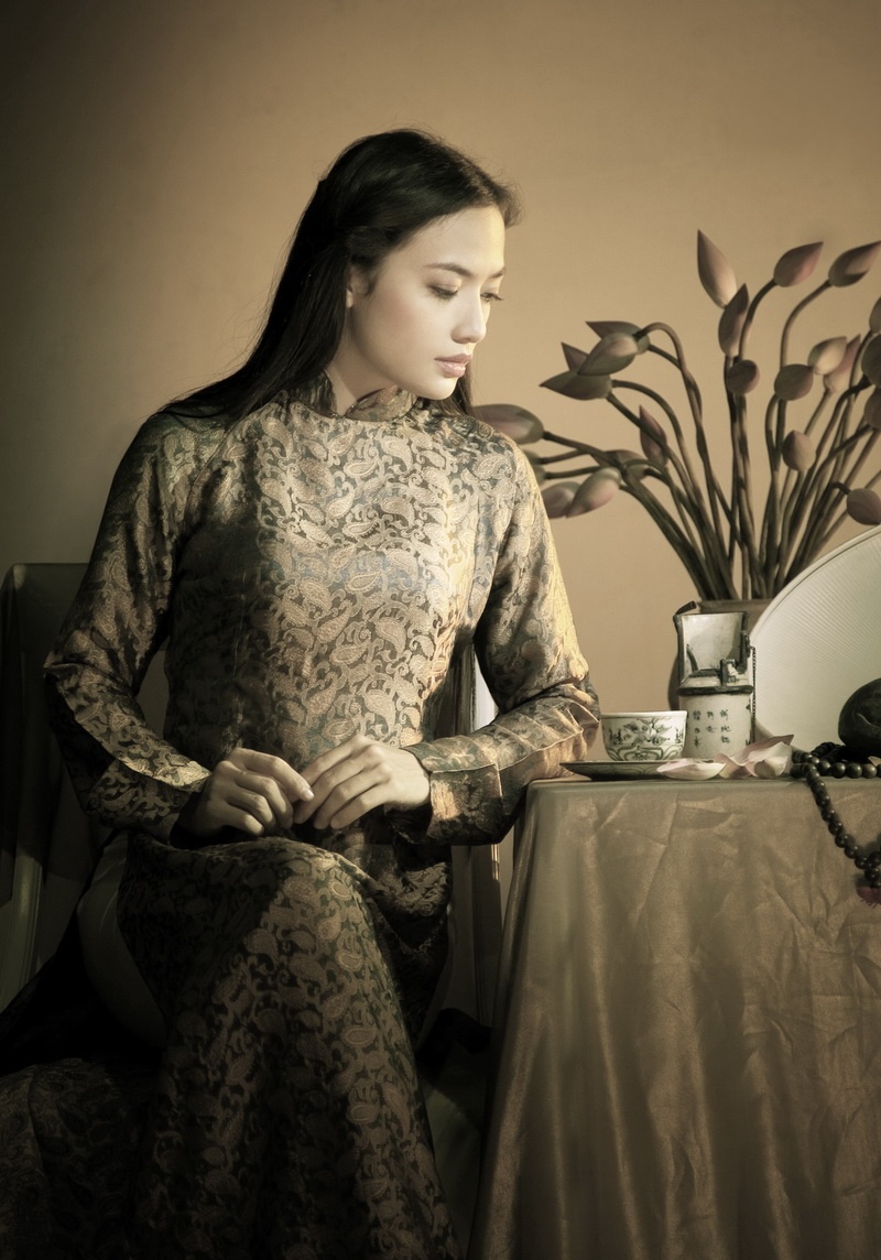 Cũng ưu ái áo dài trong dịp xuân về như nhiều người đẹp Vbiz khác, song thay vì chọn màu sắc tươi vui, trẻ trung, Tinna Tình yêu thích sự duyên dáng và hoài cổ của áo dài xưa.
