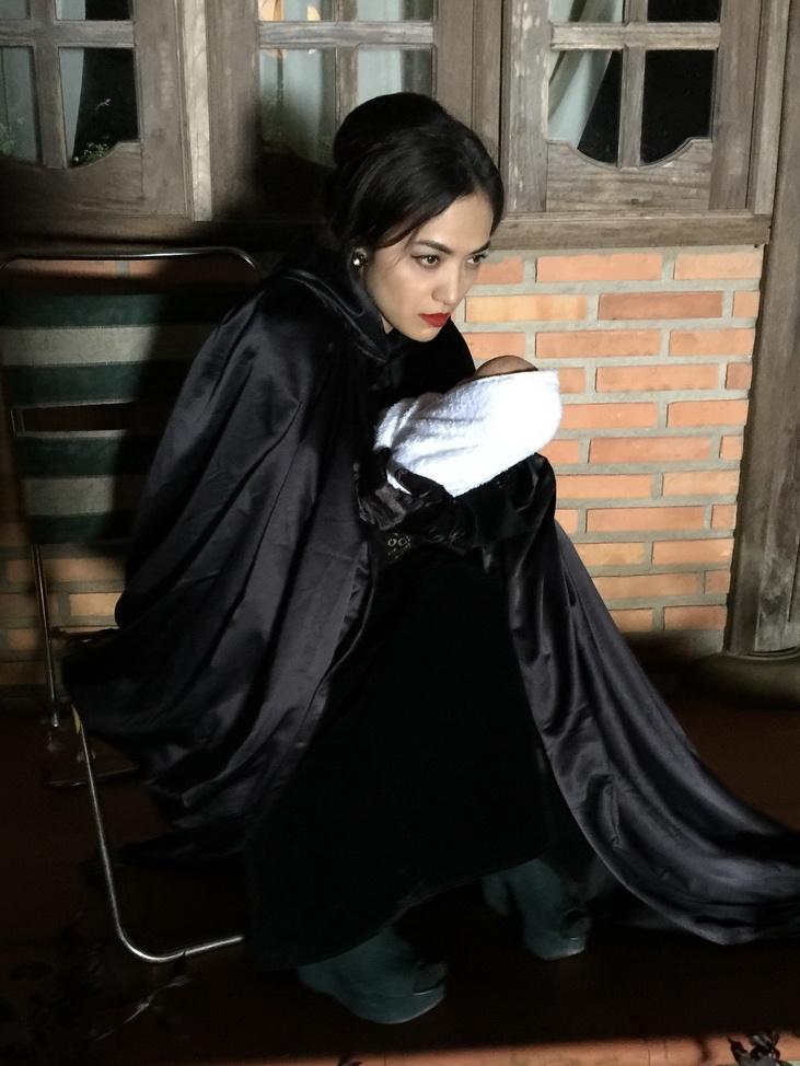 Tinna Tình trong một cảnh quay thực hiện tại Đà Lạt. |