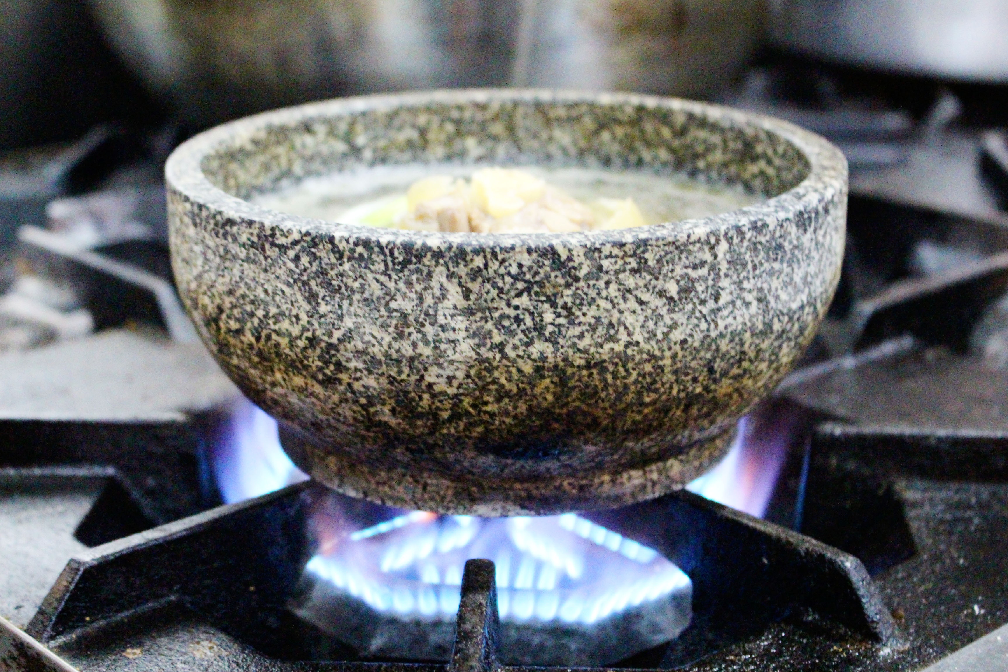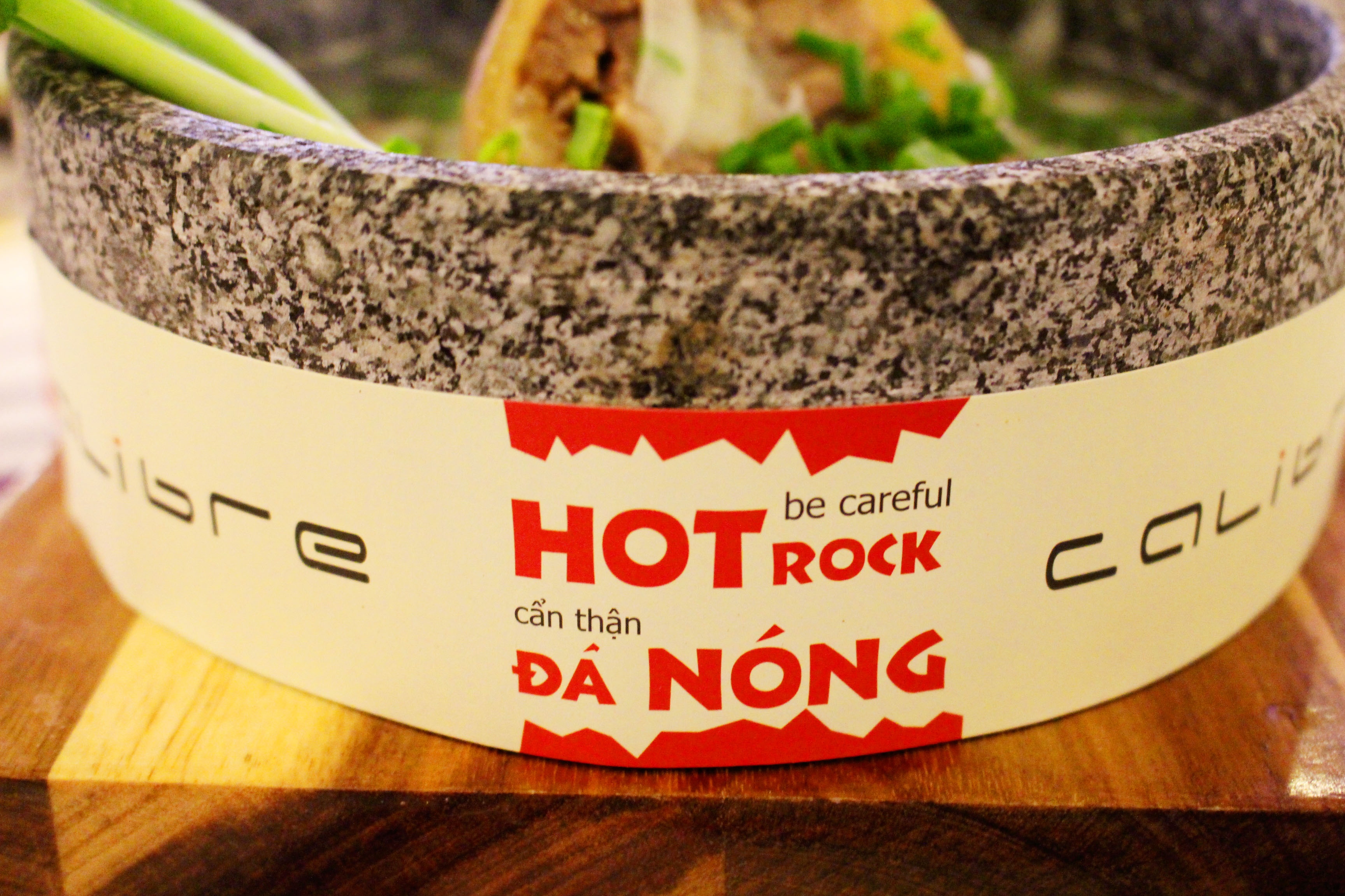 Tên chất liệu gây ngạc nhiên cho không ít người, song ẩm thực trên đá núi lửa đã có từ rất lâu ở châu Âu và thế giới. Rất nhiều người tin rằng, việc đựng hay nướng chín thức ăn bằng loại đá này không chỉ giúp thức ăn không bị cháy, khét mà còn bảo toàn tất cả những gì tinh túy nhất của nguyên liệu. Phở trong tô đá núi lửa lò một ví dụ. |