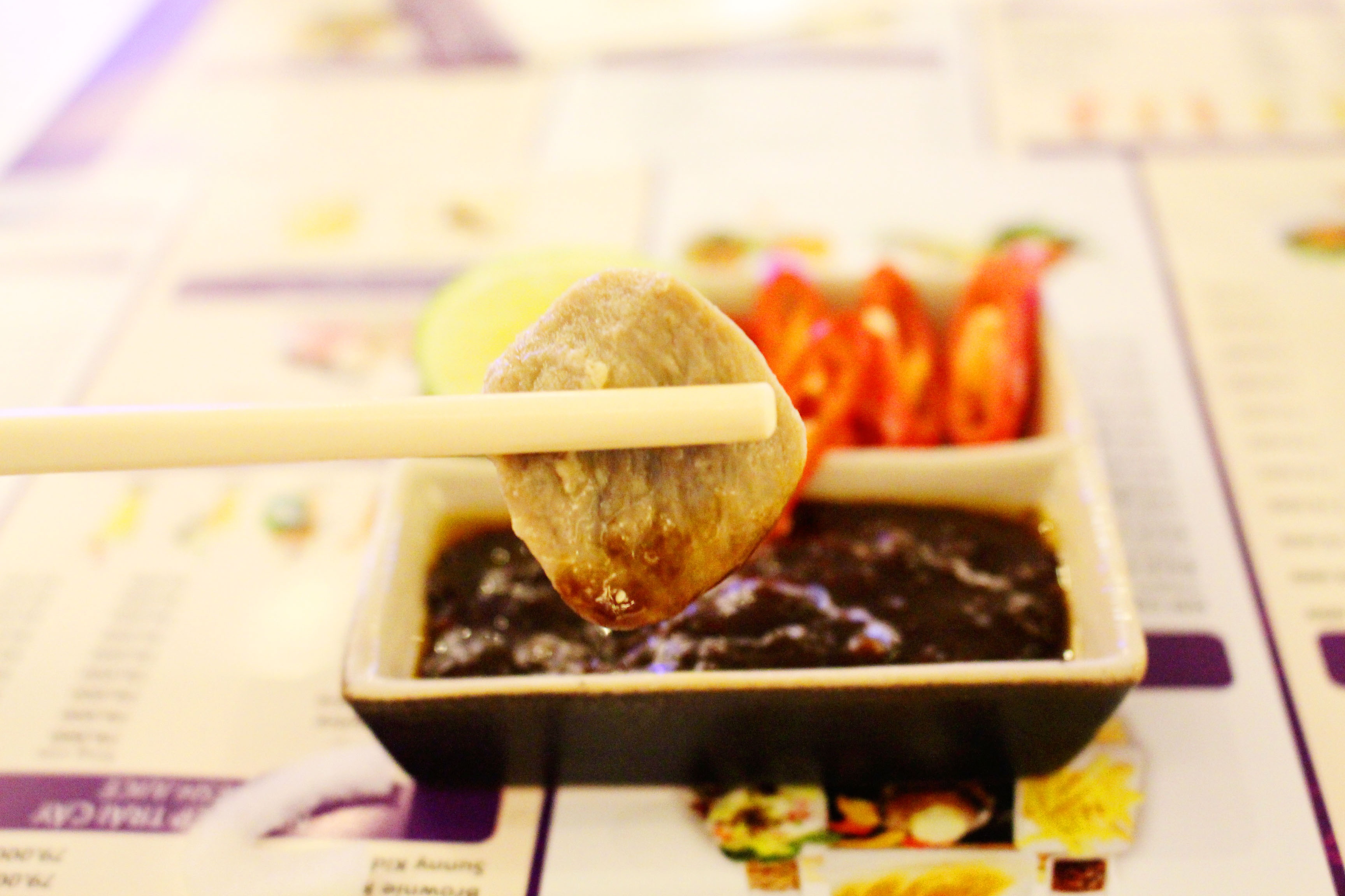 Thú vị nhất là miếng bò nướng chín mềm, thơm, dai với vị ngọt gần như được giữ nguyên vẹn bên trong. Món ăn này dọn kèm với ba loại sốt khác nhau. Bạn có thể lần lượt thử các loại sốt khác nhau. |