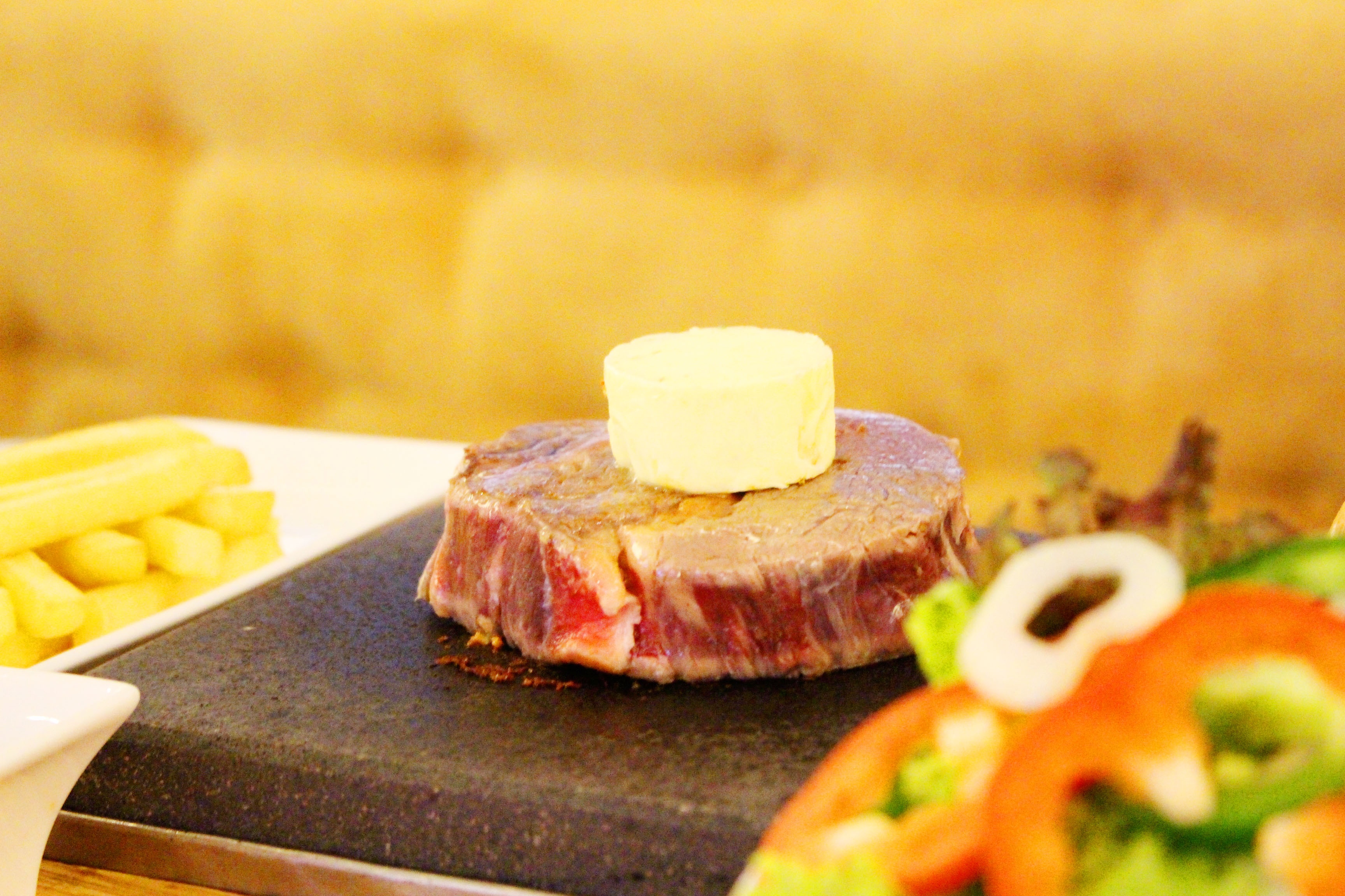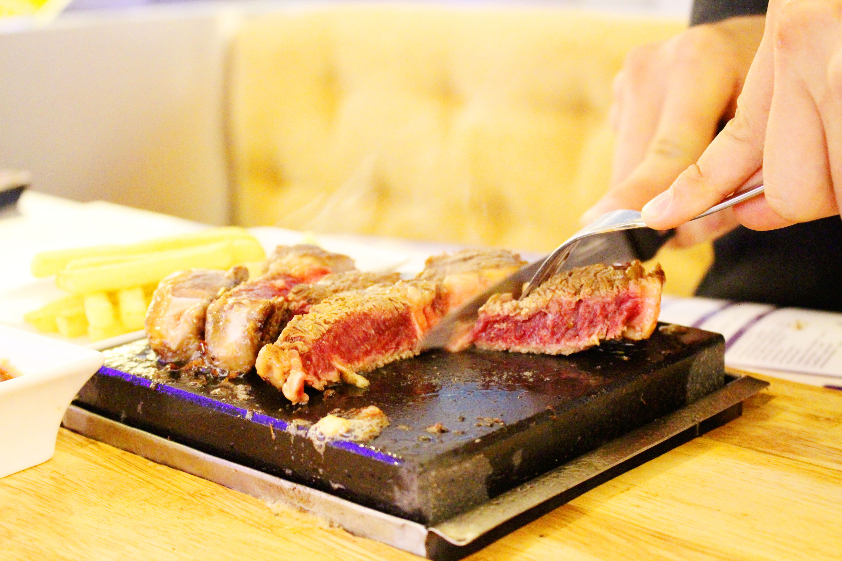 Thịt bò lấy phần ngon nhất, ướp sơ với tiêu rồi nướng trên đá núi lửa. Cái nóng của đá khiến miếng thịt dần dần tan chảy, tạo ra những tiếng xèo xèo đánh thức tất cả các giác quan. |