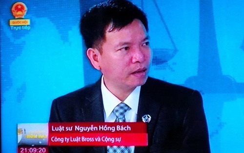 | Luật sư Nguyễn Hồng Bách trong Chương trình "Câu chuyện hôm nay" của Truyền hình Quốc hội nói về vụ án của Vũ Phan Điền. |