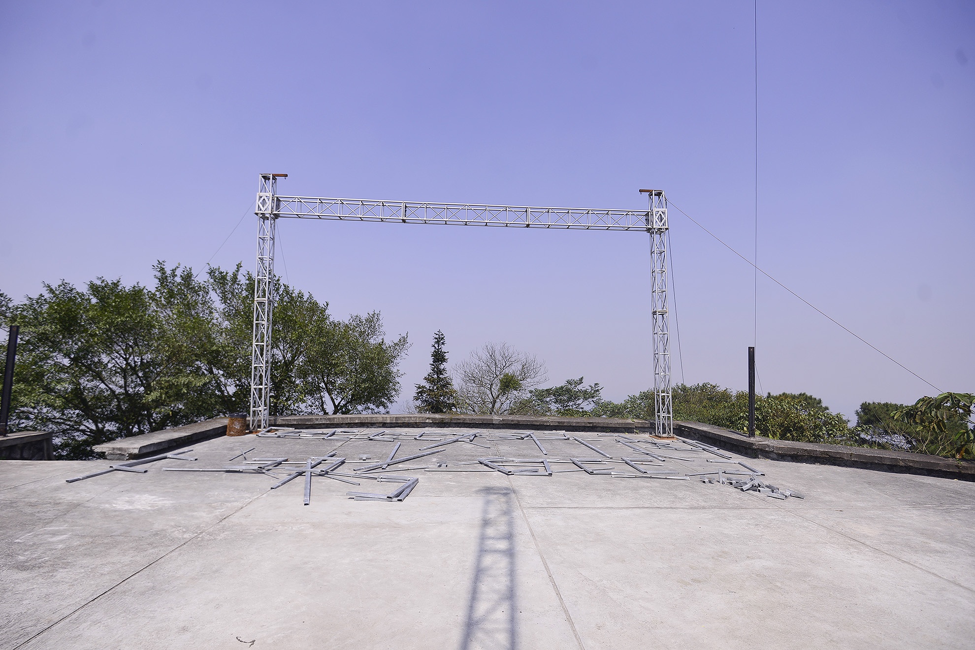 | Phía trên khu vực sân bay (khu di tích chiến thắng cứ điểm cốt 600, có từ thời Pháp thuộc) trở thành sân khấu, dựng rạp bằng sắt. |