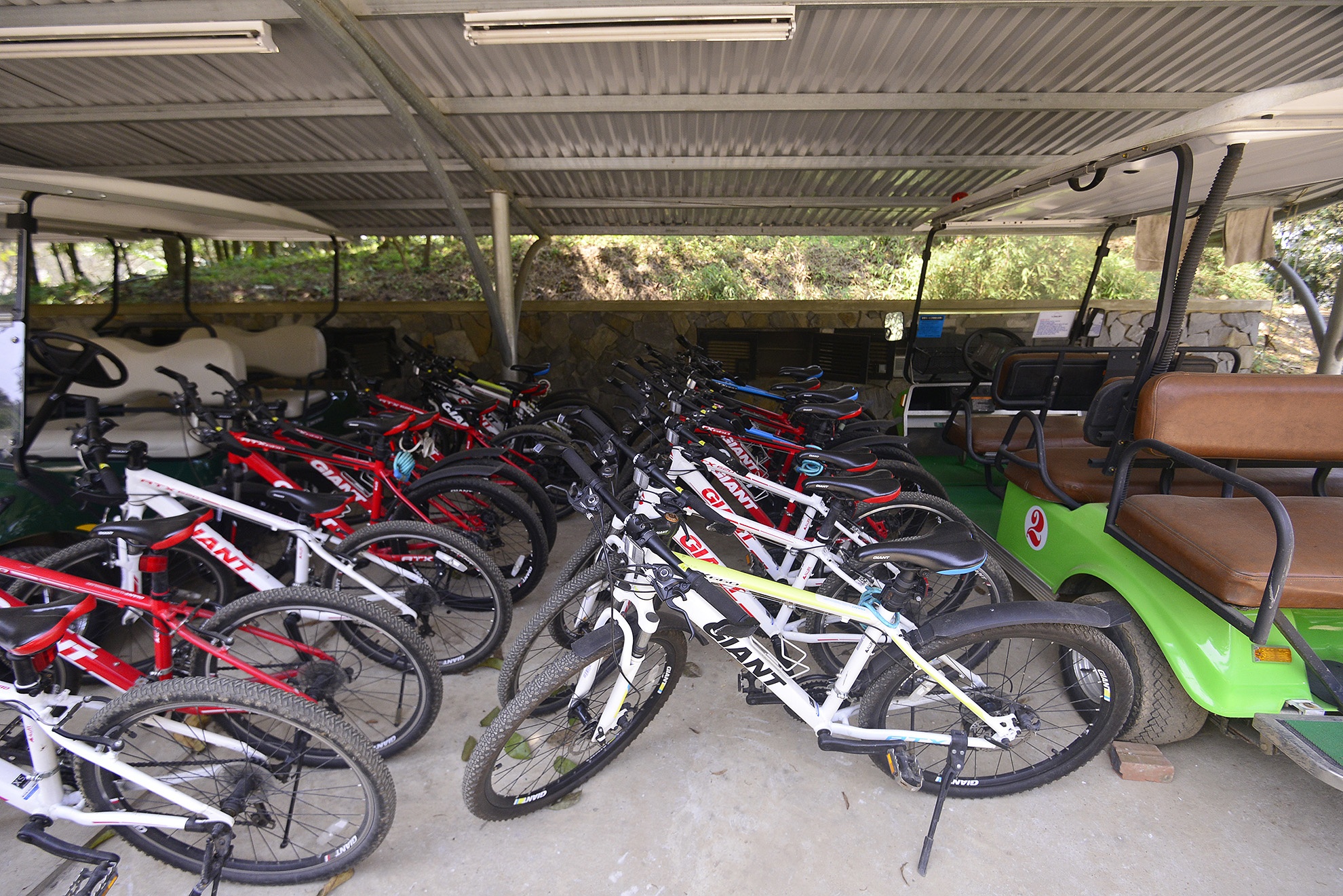 | Hàng loạt xe đạp tại bãi đất trống của resort được dựng lên cho khách tham quan thuê, mượn sử dụng. |