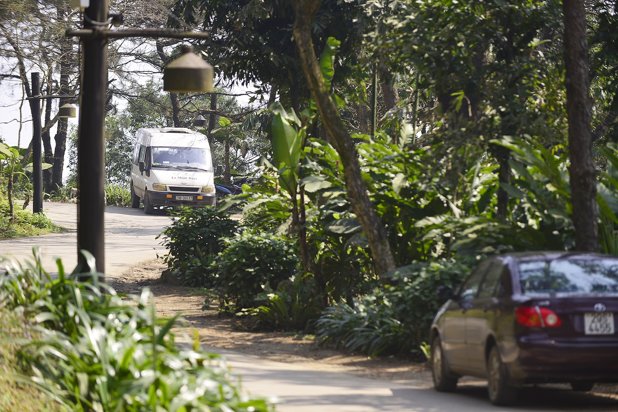| Nhiều ôtô 16 chỗ dùng để chở khách tham quan đỗ phía trong khuôn viên resort. |