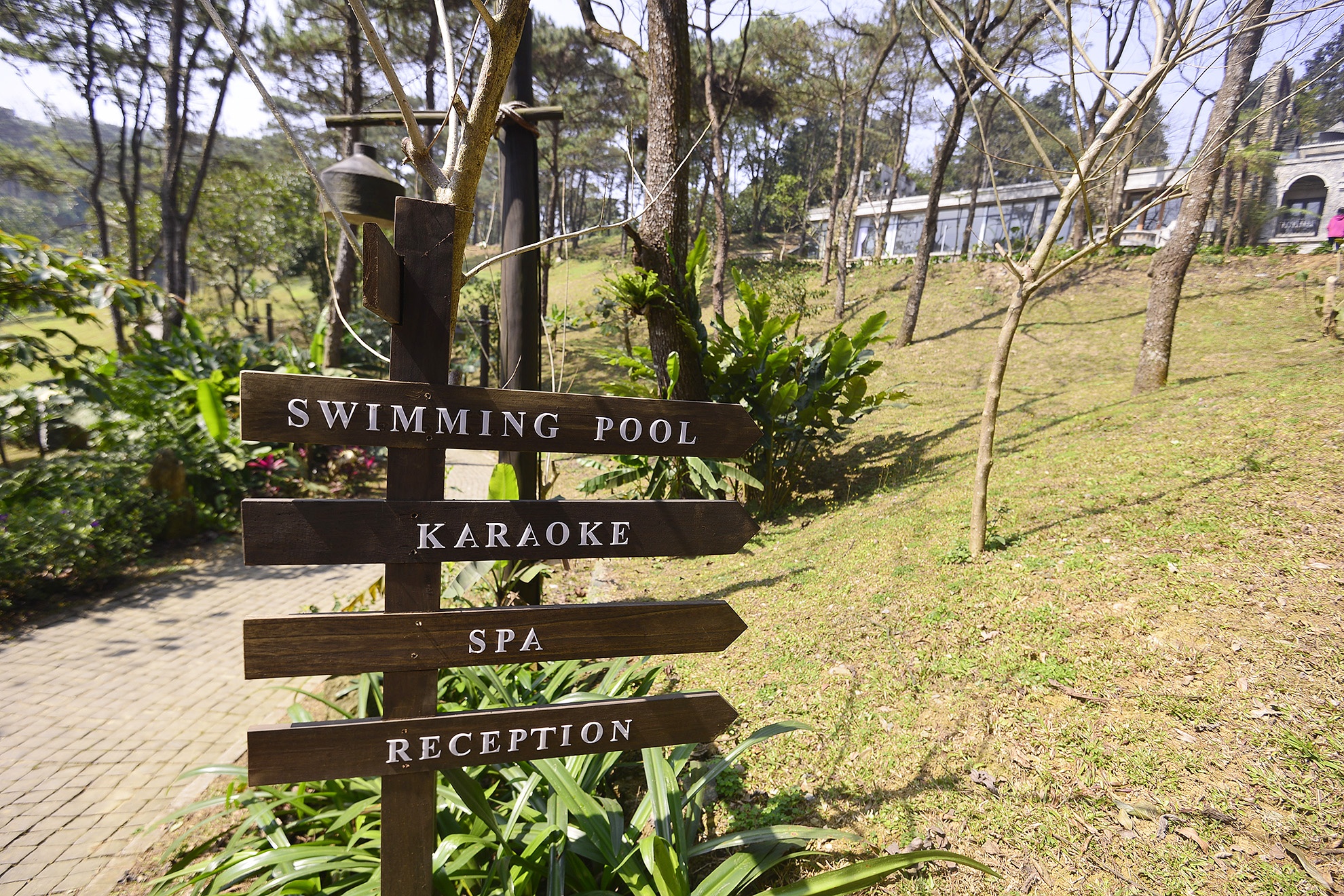 | Ngay phía trước cổng vào resort có bảng chữ Le Mont Bavi. Hầu hết các công trình được xây kiên cố và đã hoàn thành.