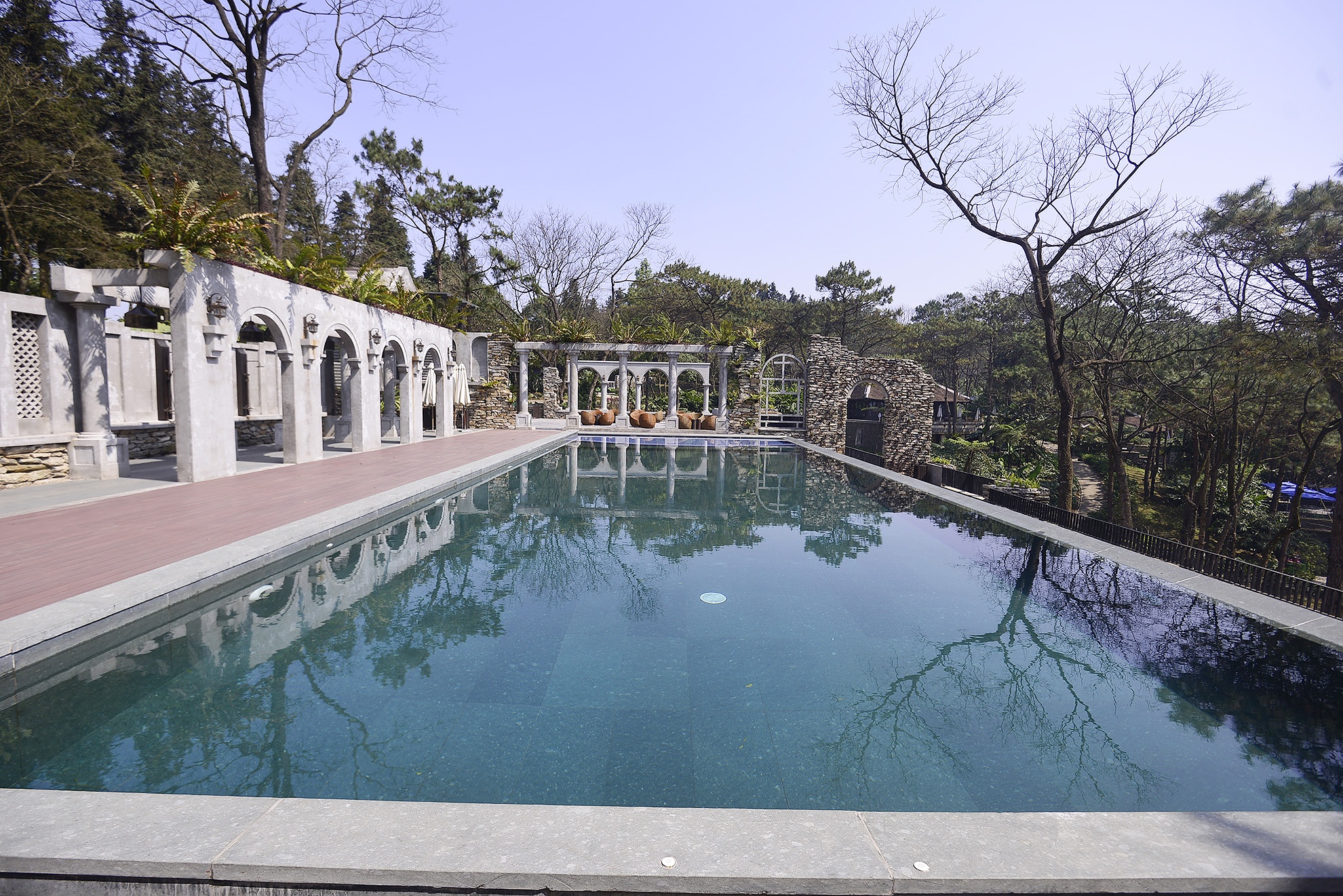 | Bể bơi rộng hàng trăm mét vuông trong khuôn viên. |