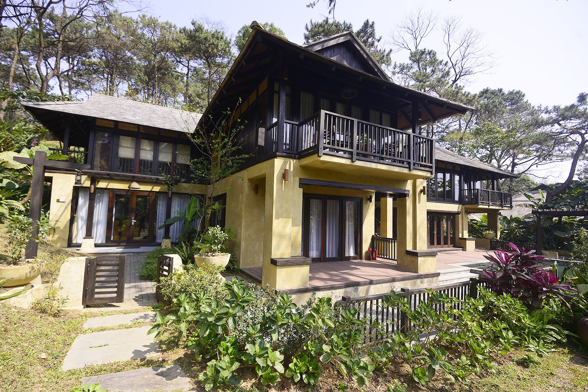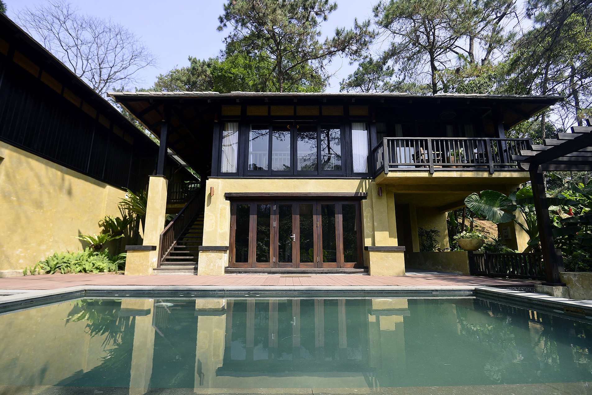 Các ngôi biệt thự cùng hệ thống bể bơi, cây xanh, tiểu cảnh của dự án resort Le Mont Bavi (Hà Nội) được thiết kế hoành tráng nhưng không có giấy phép.