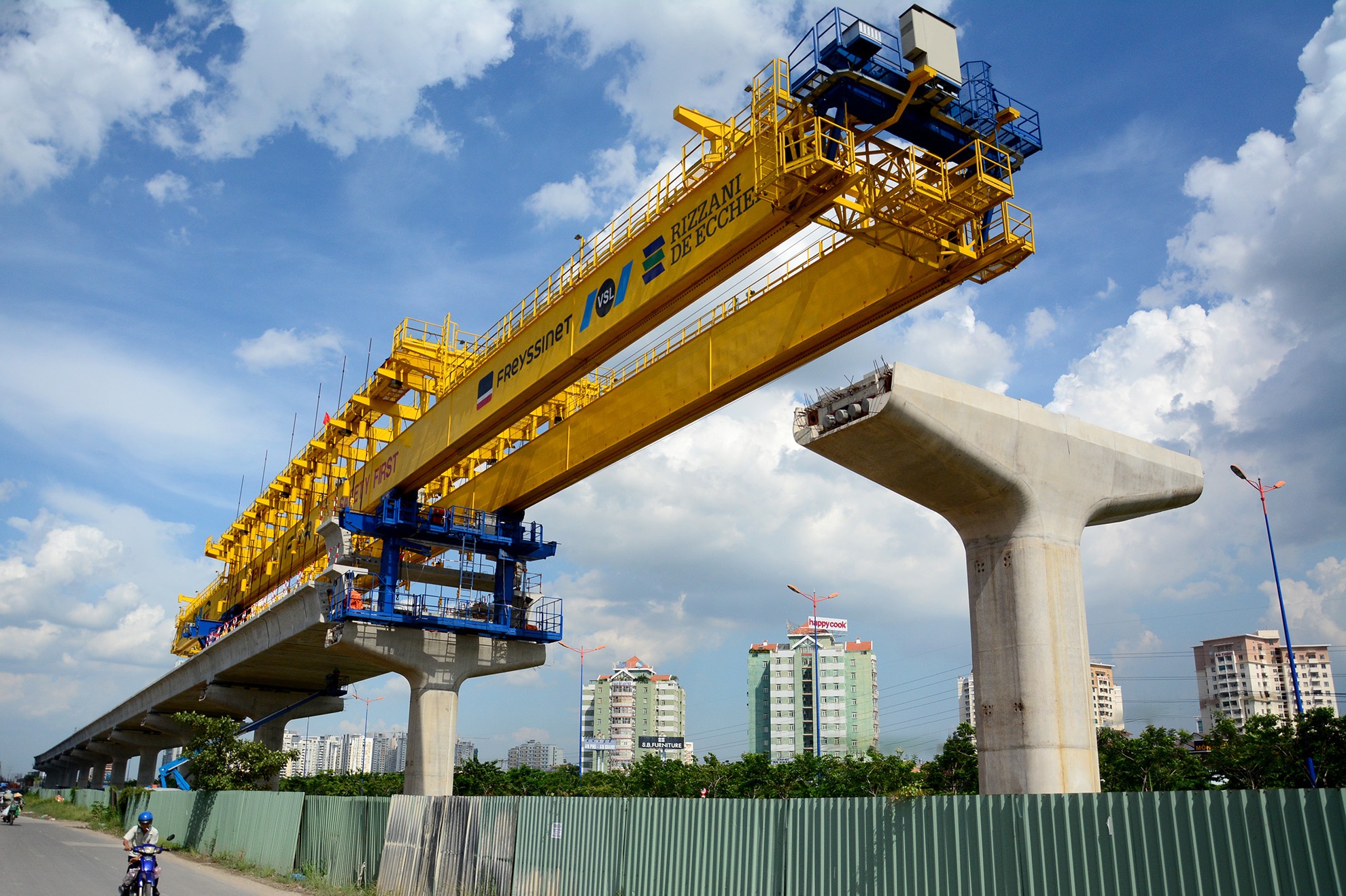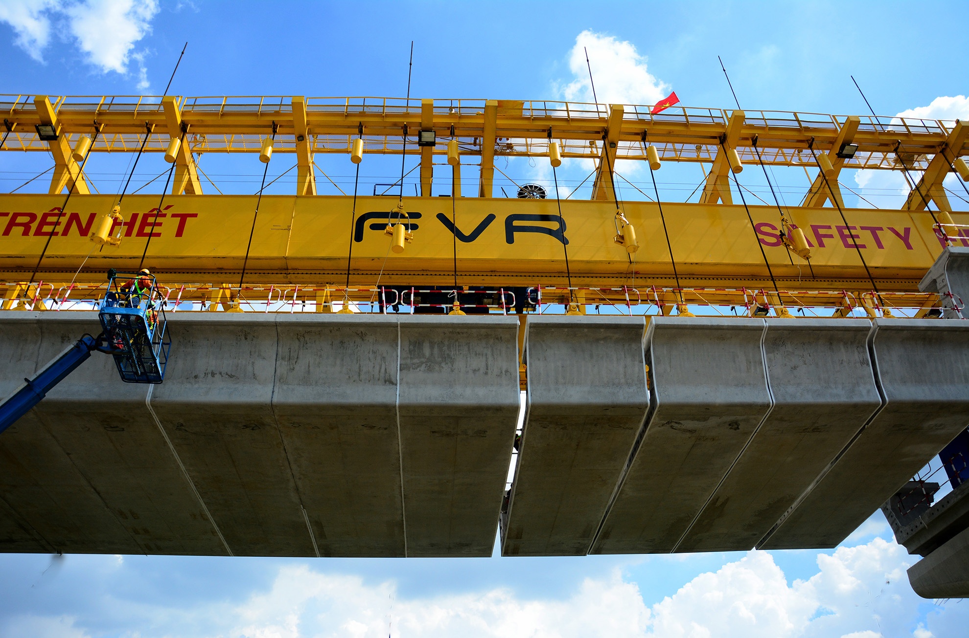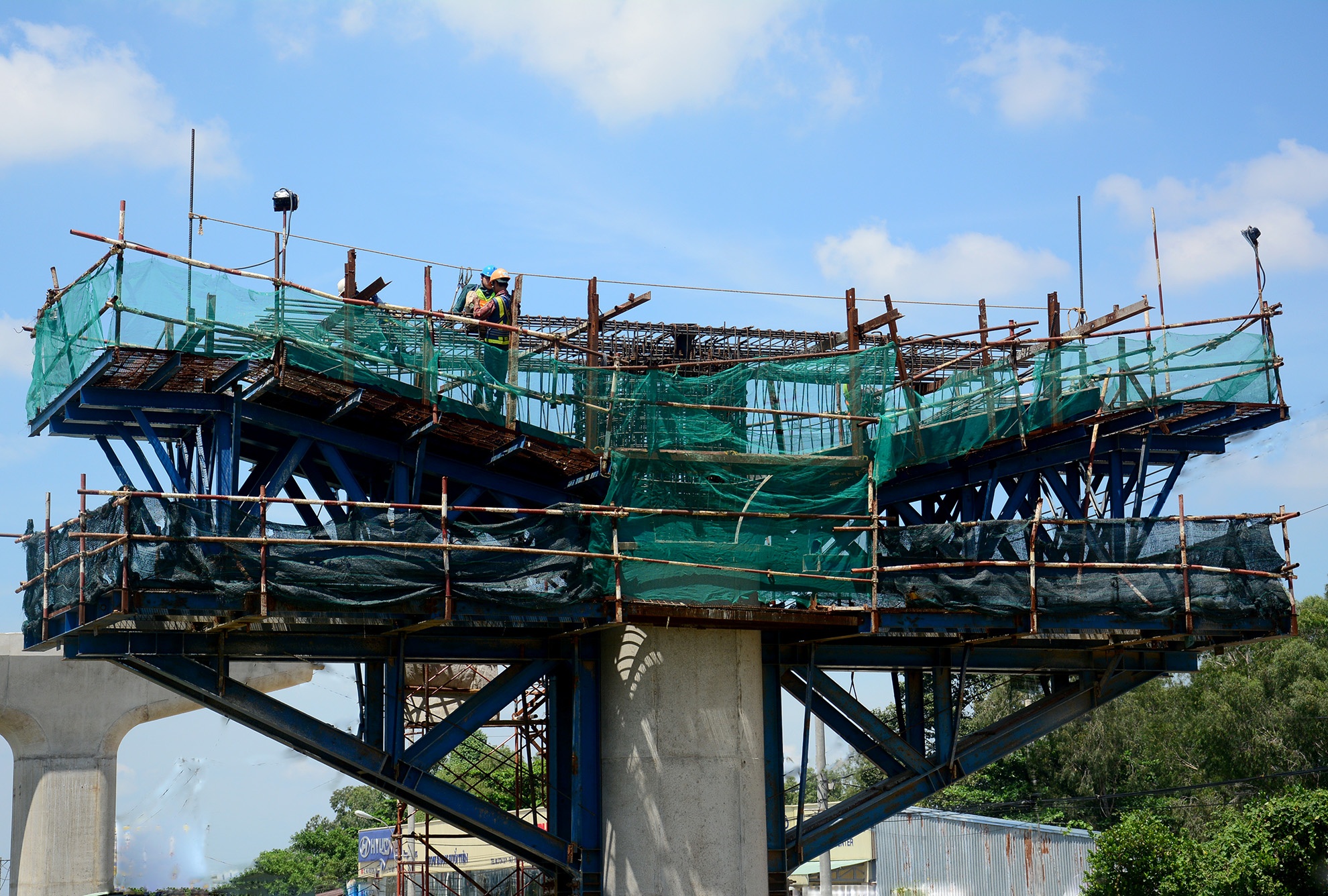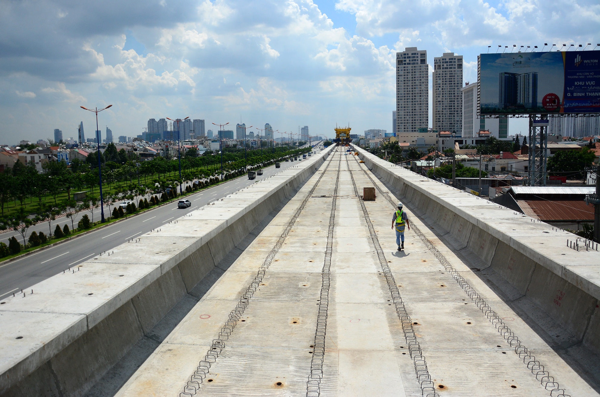 | 12 km cầu cạn đang được thi công bằng biện pháp lao lắp trên hệ đà giáo di động với 3 mũi thi công tại phường Thảo Điền (quận 2), phường Trường Thọ và phường Linh Trung (quận Thủ Đức). |