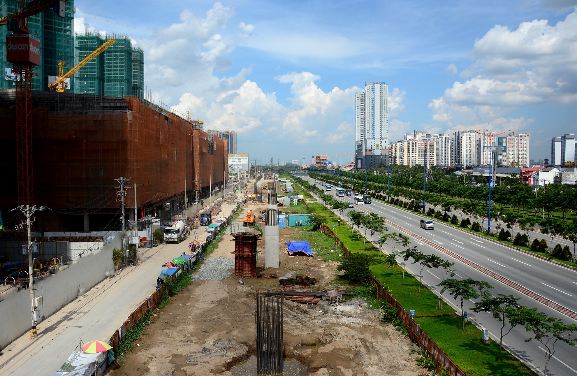 Việc thi công hàng trụ cột chạy song song cùng Xa lộ Hà Nội đoạn từ cầu Sài Gòn (quận 2) đến Dĩ An (Bình Dương) không làm ảnh hưởng đến giao thông khu vực này.