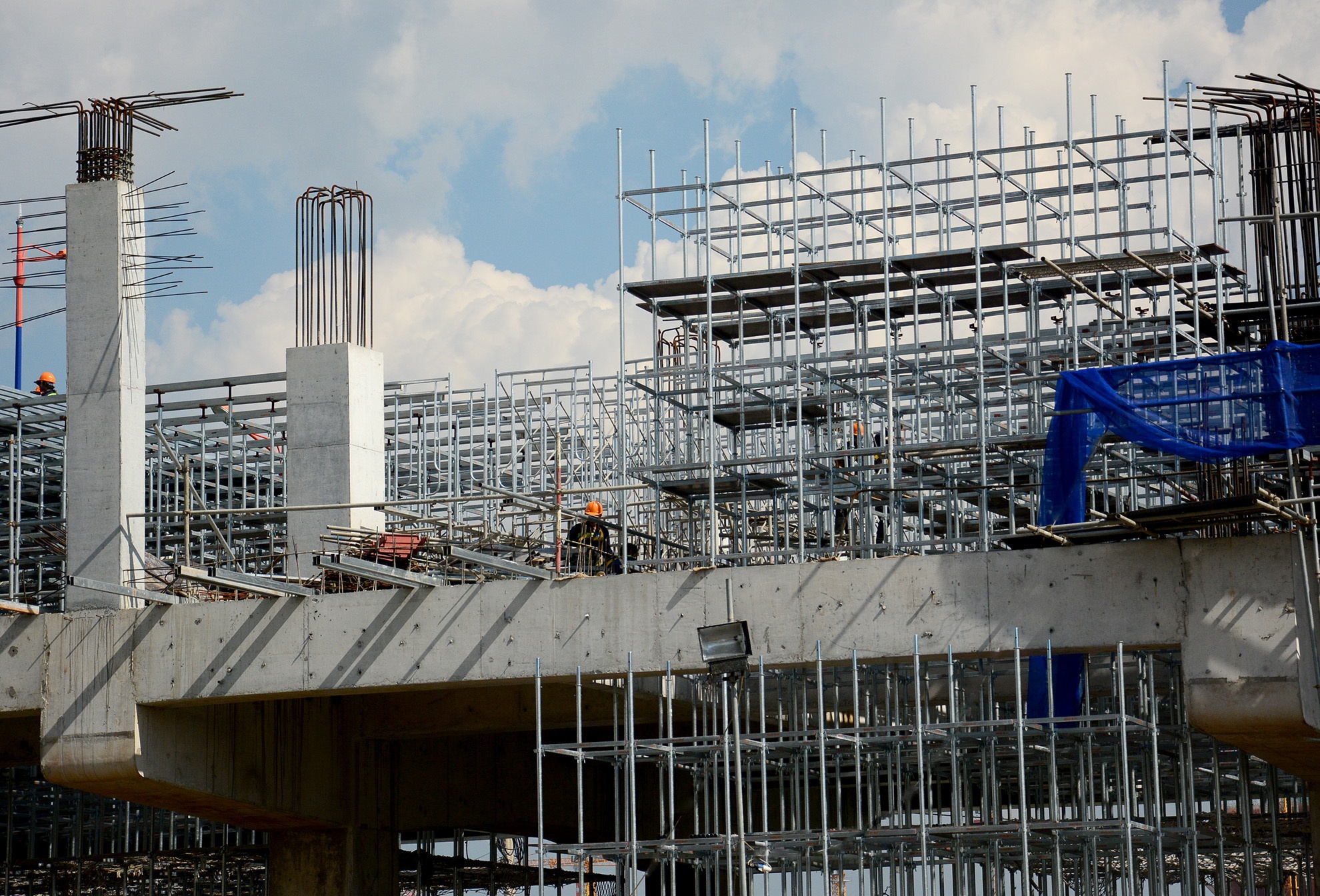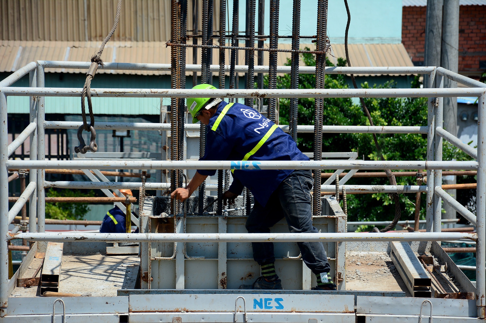 | Tại khu vực Suối Tiên, công nhân đang đổ các trụ đầu tiên của tầng trệt nhà ga. Toàn tuyến có 14 ga, trong đó có 11 ga trên cao và 3 ga ngầm. |