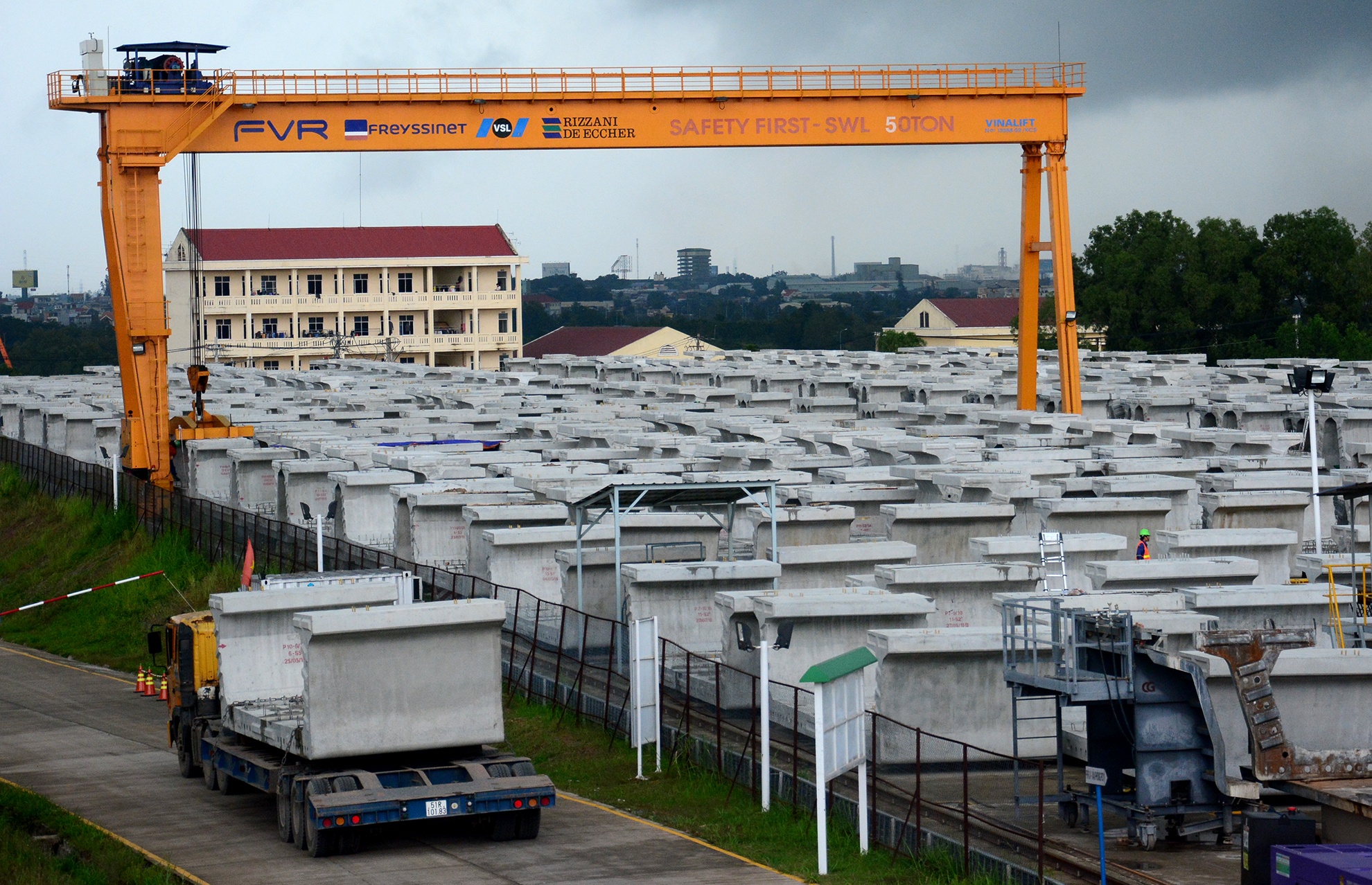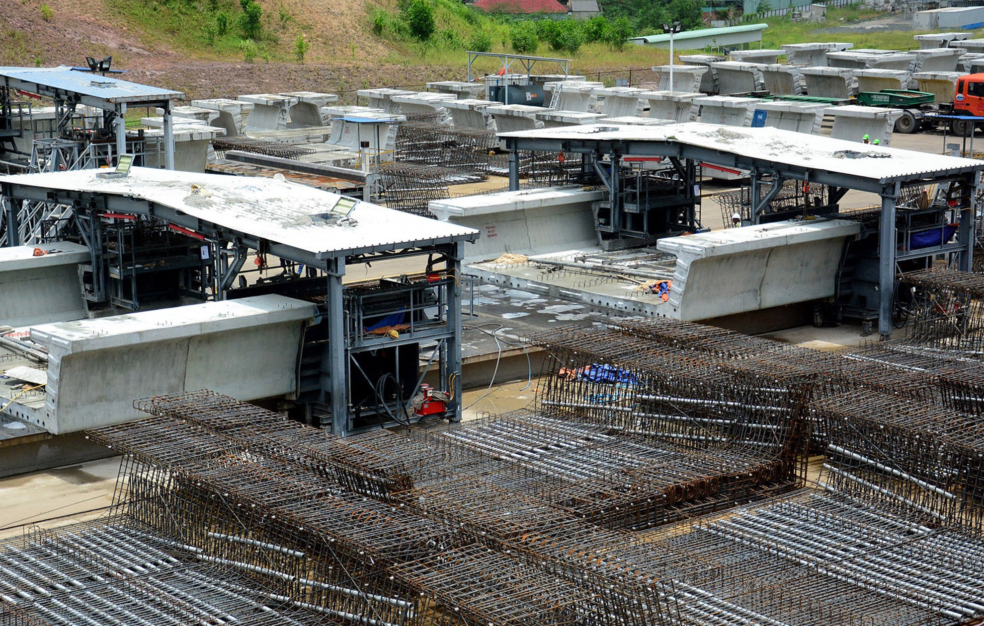 | Trên công trường bãi đúc dầm, các gói thầu, bộ phận của FVR hoạt động nhịp nhàng từ khu làm lồng thép, đưa vào khuôn, đổ bê tông đến kiểm tra và vận chuyển các đốt dầm tới vị trí lắp đặt. Theo nhà thầu thi công, sau gần 5 tháng, bãi đúc dầm đã đúc được hơn 700 đốt trong tổng số hơn 4.500 đốt của toàn tuyến. |