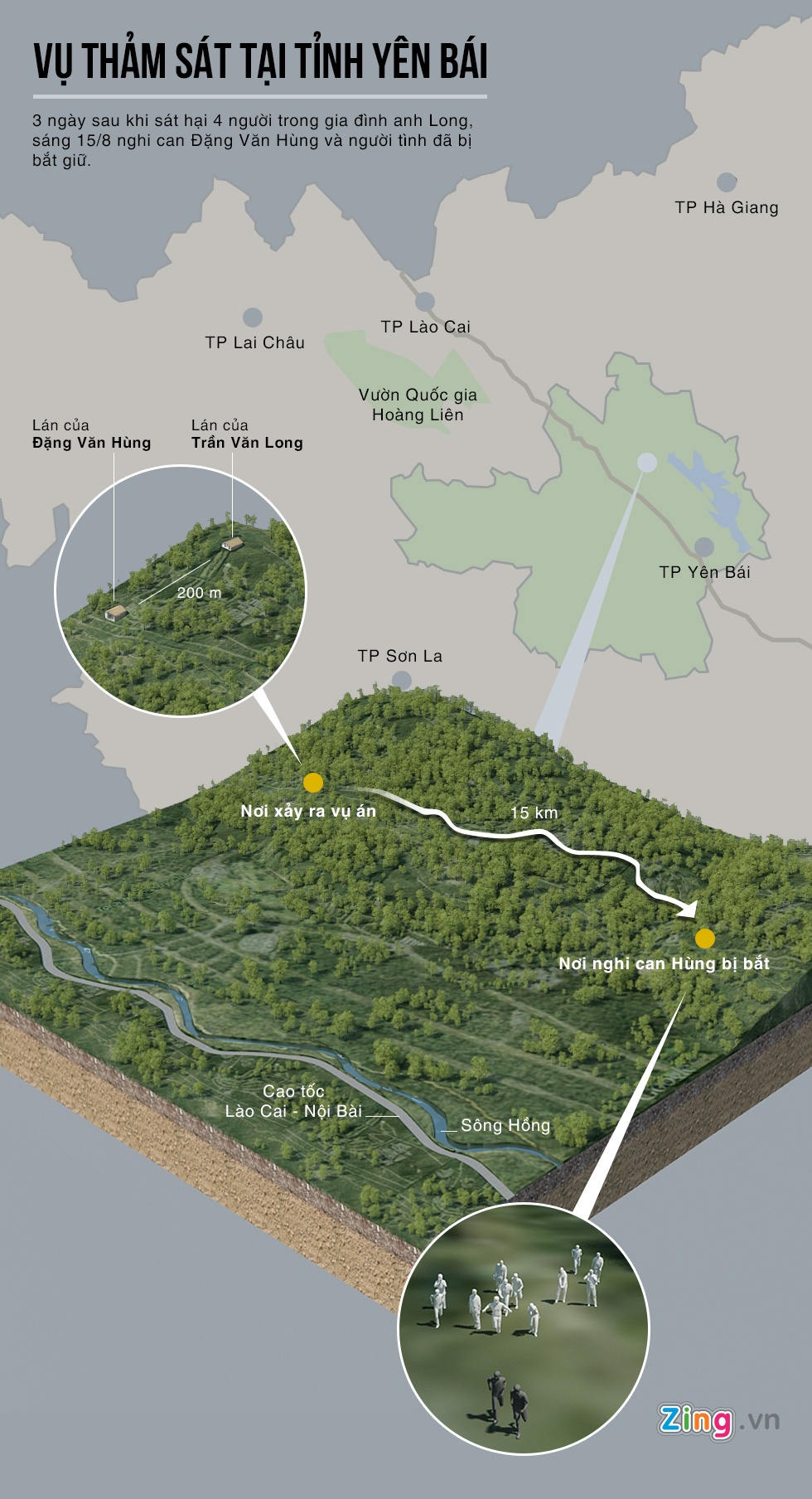 3 ngày sau khi sát hại 4 người trong một gia đình, sáng 15/8, nghi can Đặng Văn Hùng và người tình đã bị bắt giữ từ manh mối là chiếc bật lửa mới bỏ lại bên đường.