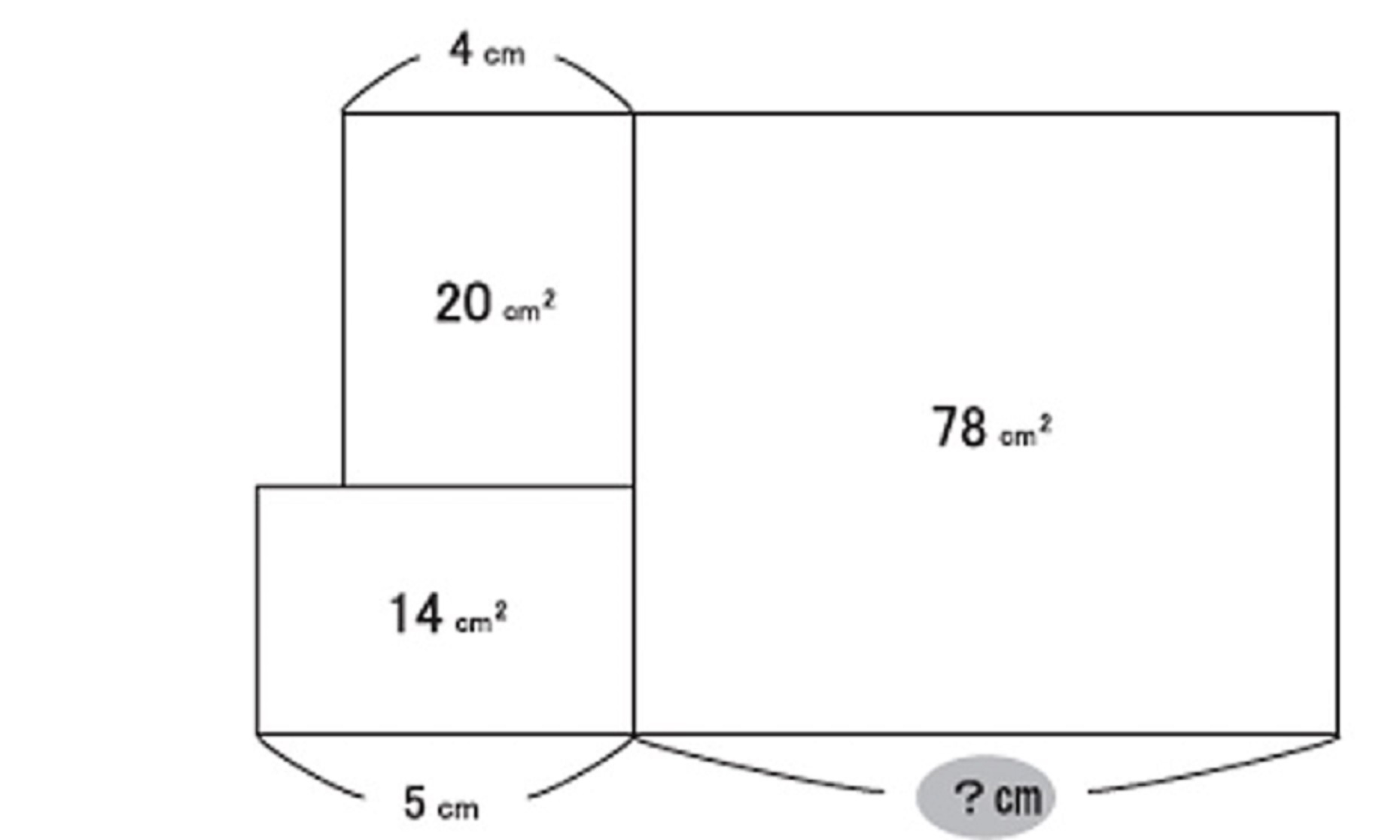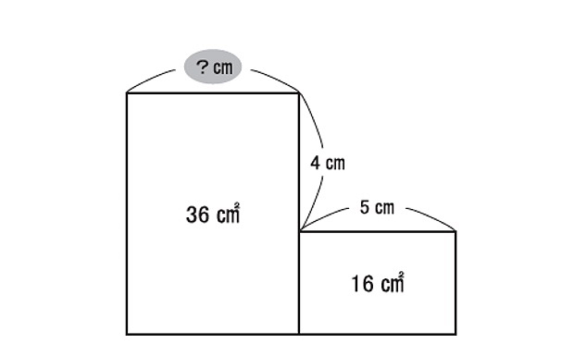 Tổng diện tích của A và hình chữ nhật bên dưới là 20 + 16 = 36 cm2 và bằng diện tích hình chữ nhật lớn bên trái.