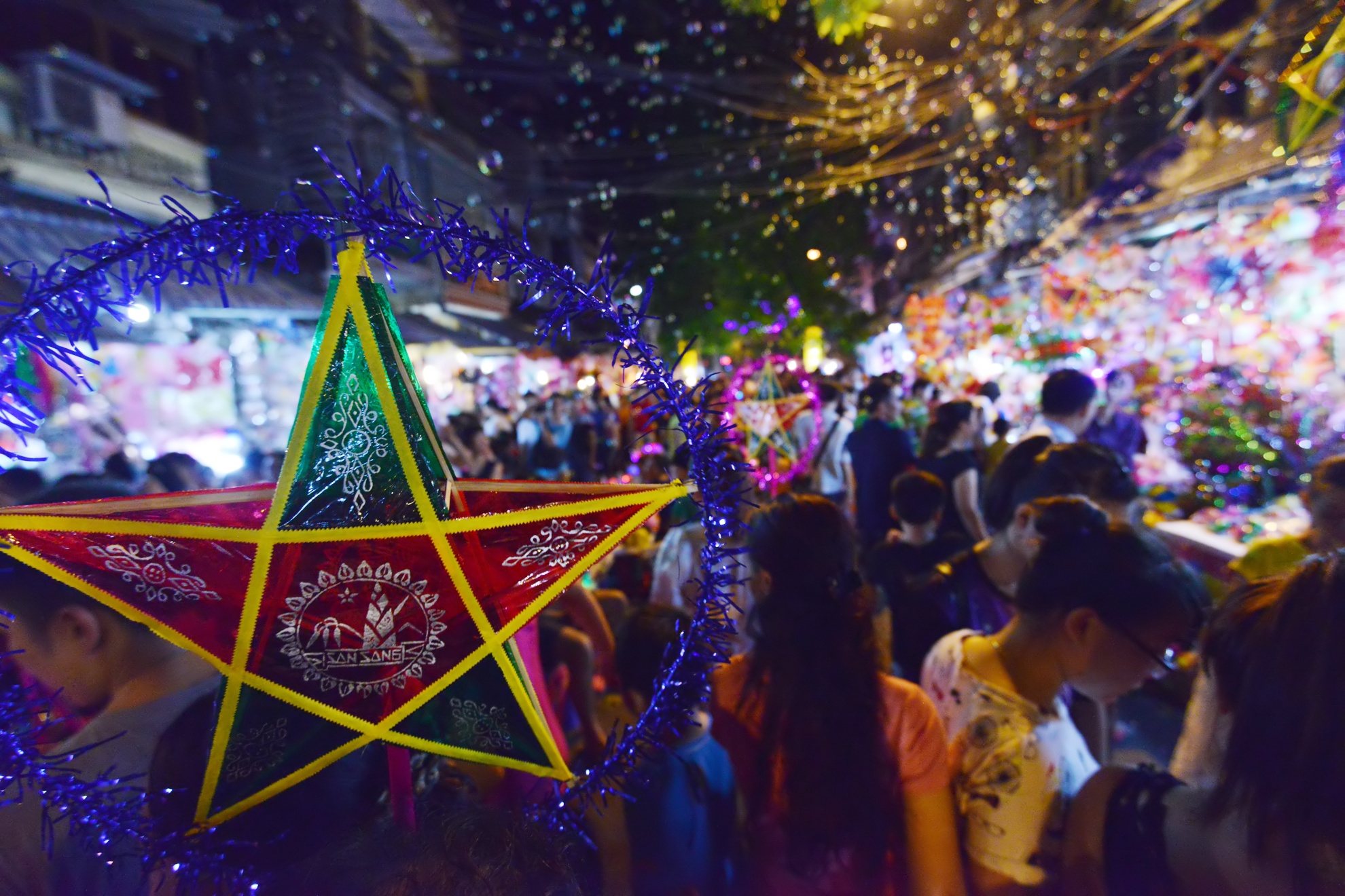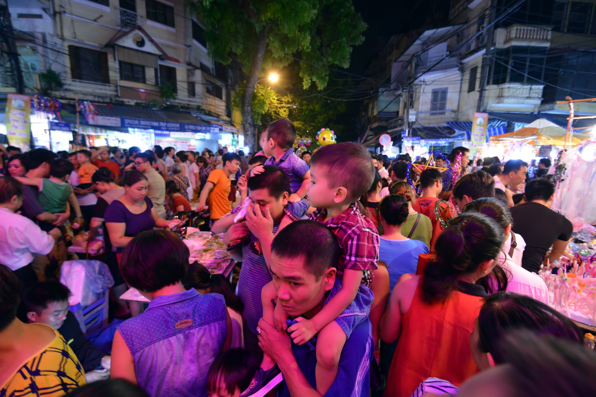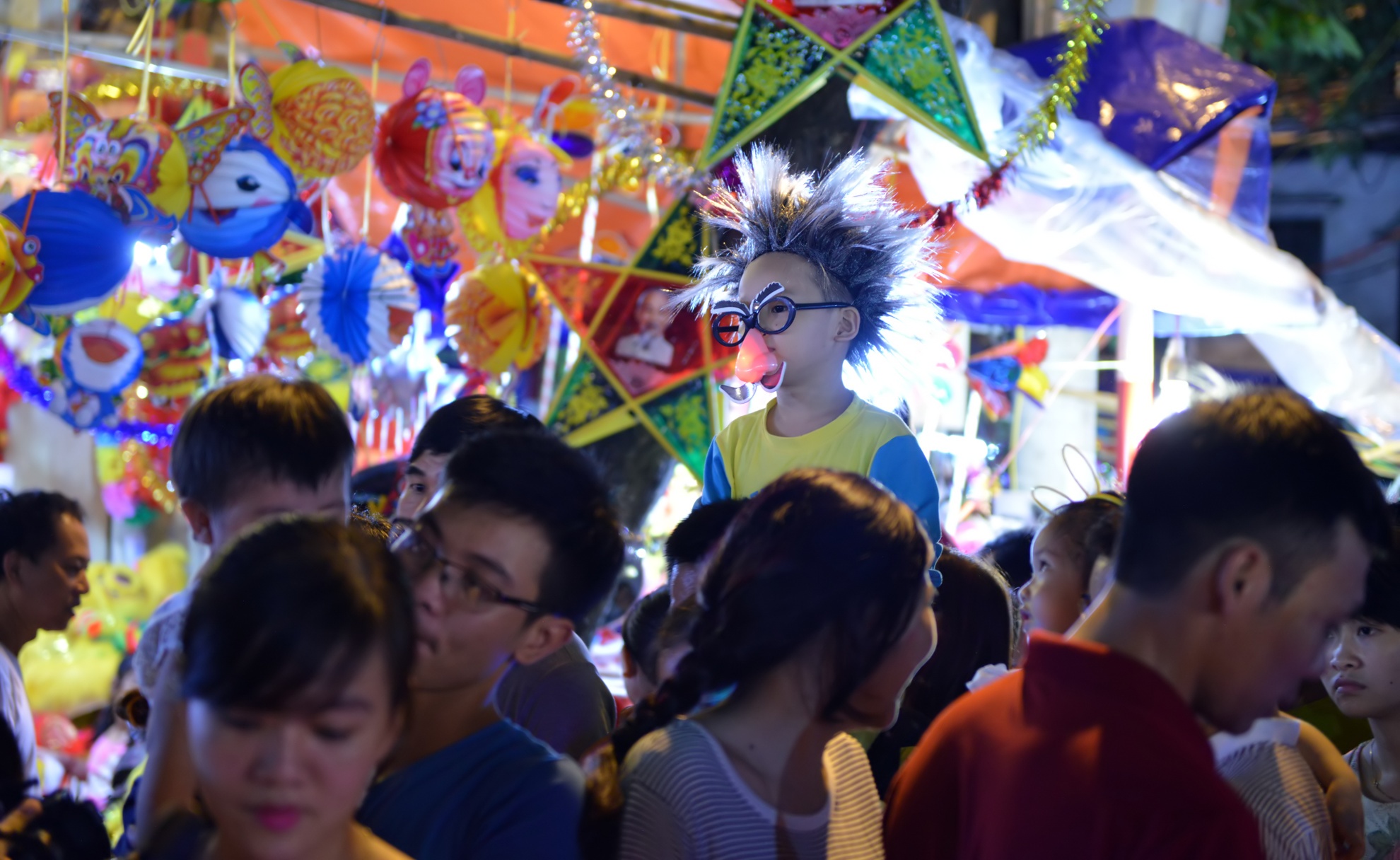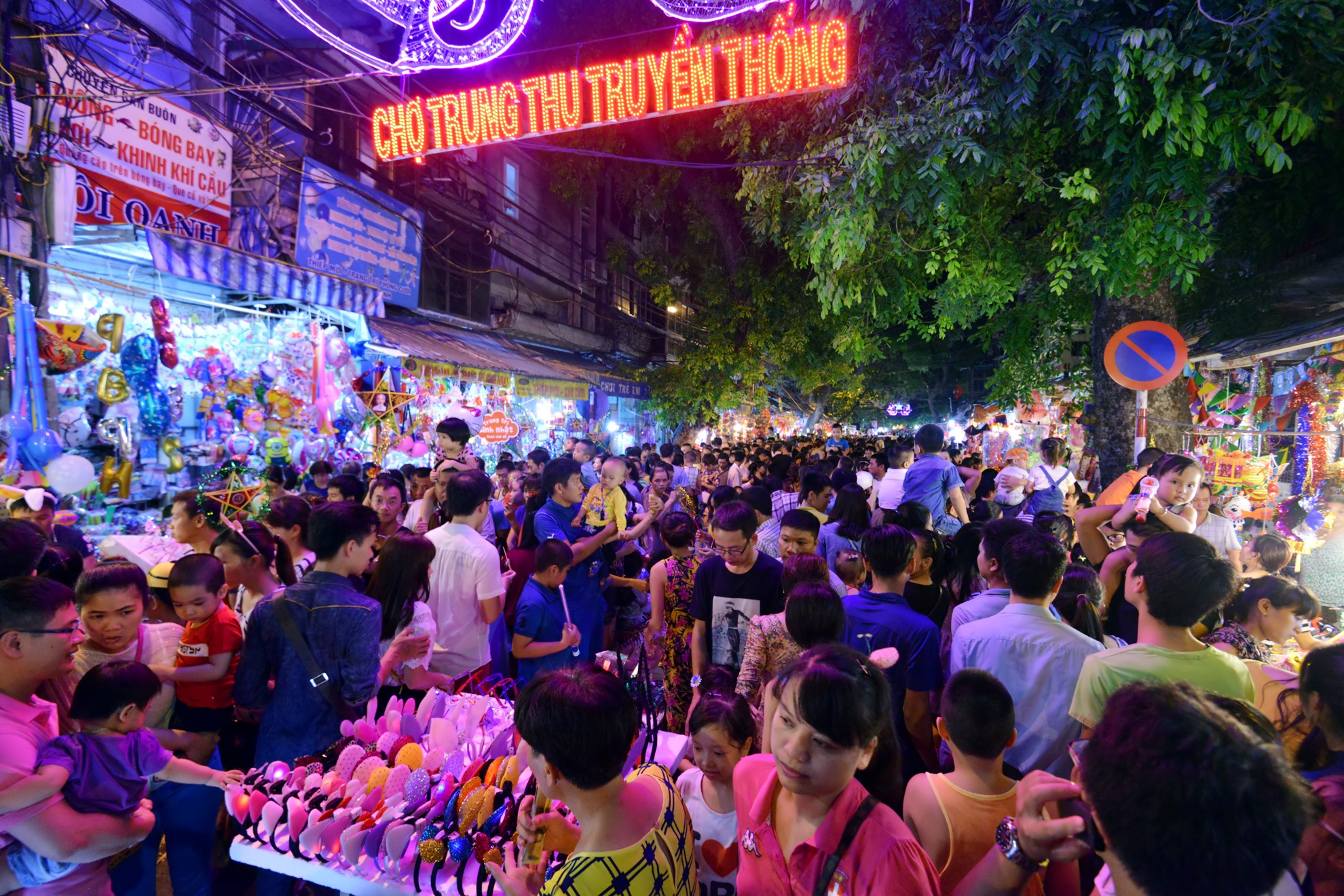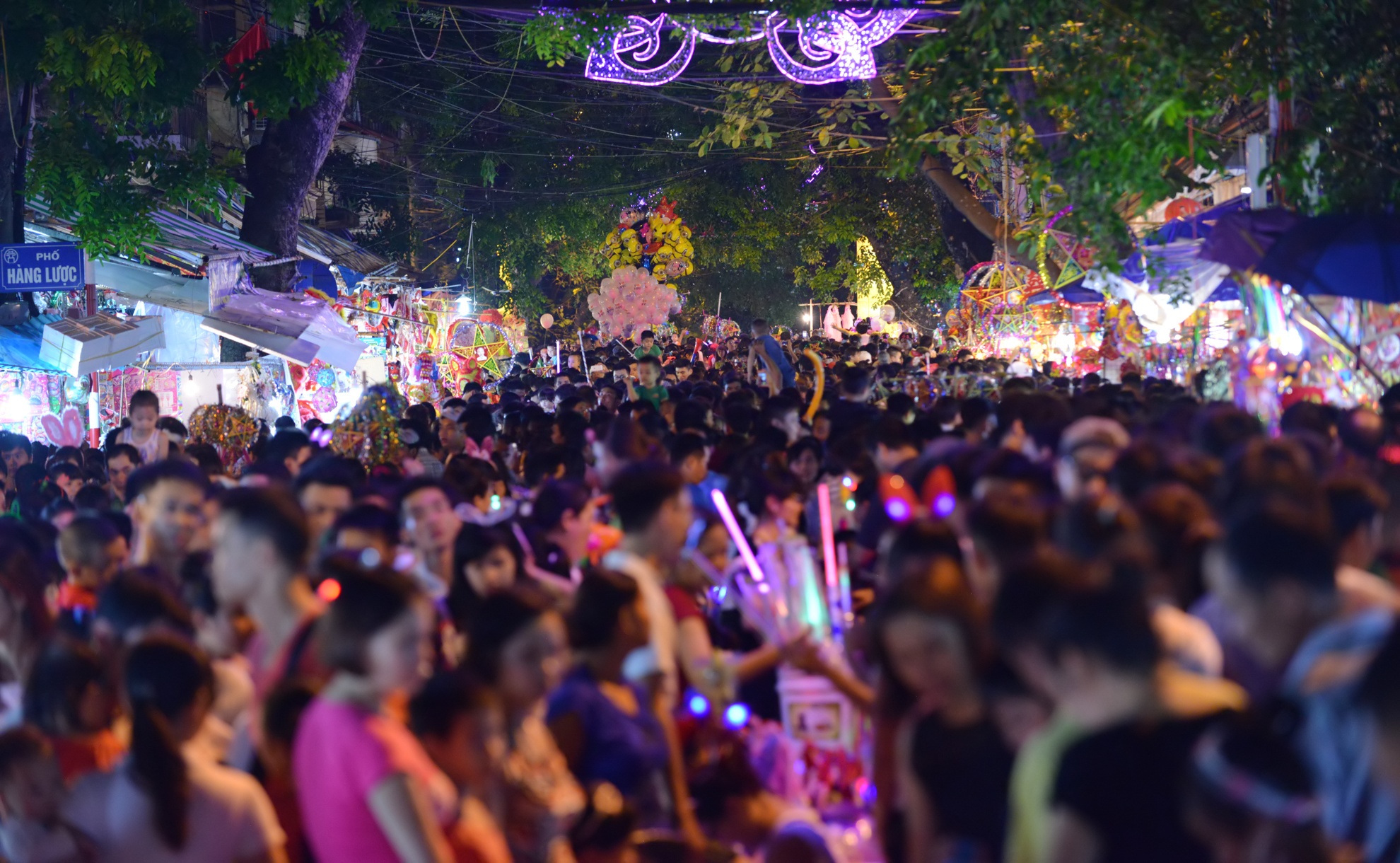 Hàng chục nghìn người dân thủ đô đổ về chợ bán đồ chơi trung thu tại các tuyến phố Hàng Mã, Hàng Lược... khiến cho khu vực này như một "biển" người.