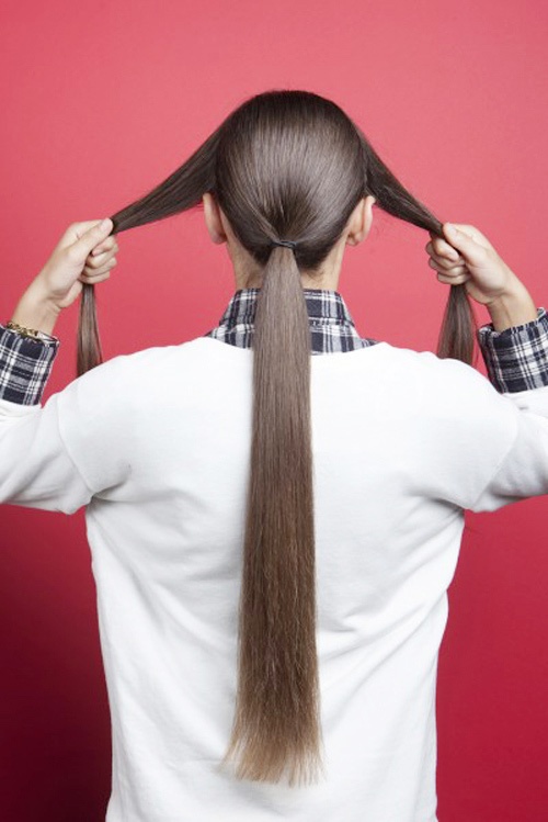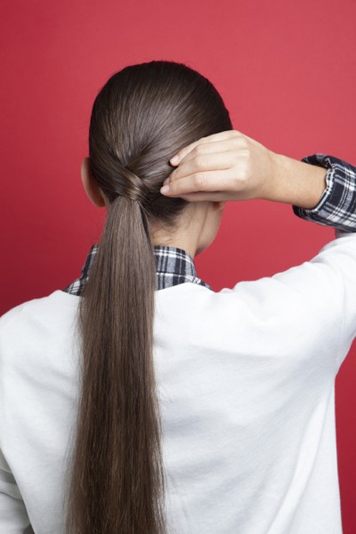 | Cột thun cho đuôi tóc. Lưu ý chọn màu thun giống màu tóc để tạo độ tự nhiên. |