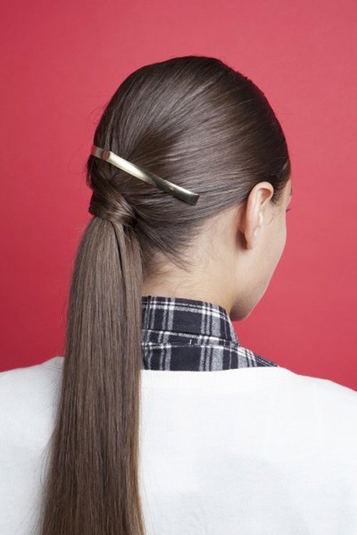 | Giấu 2 phần đuôi tóc ra sau gáy và tiếp tục kẹp ghim lại. |