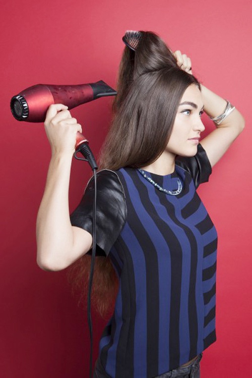 | Trước tiên sử dụng máy sấy để tạo độ phồng cho phần đỉnh đầu. |
