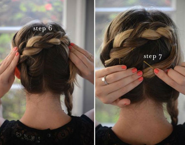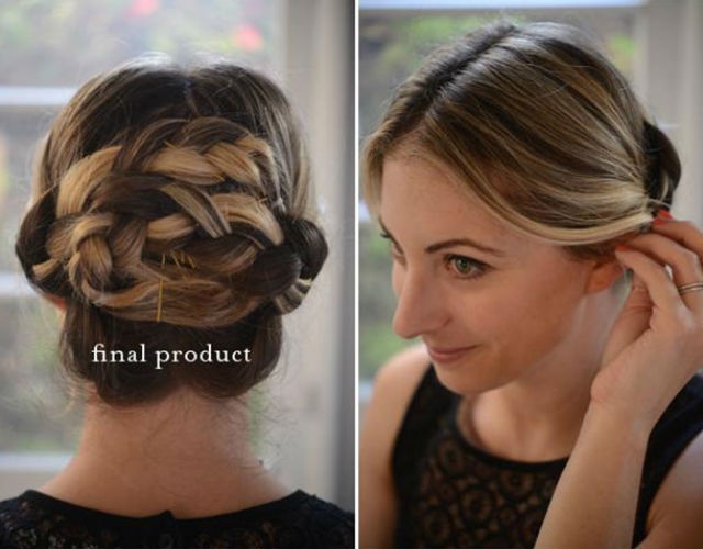 | Làm tương tự với phần tóc bên phải. Chú ý ghép hai phần vòng cung "ăn ý" với nhau để tạo cảm giác phần đuôi tóc tết như một bông hoa đang nở sẽ khiến kiểu tóc này đẹp hơn. Dùng cặp ghim cố định lại toàn bộ phần tóc tết và bạn đã có thể tự tin đi dự tiệc rồi. |