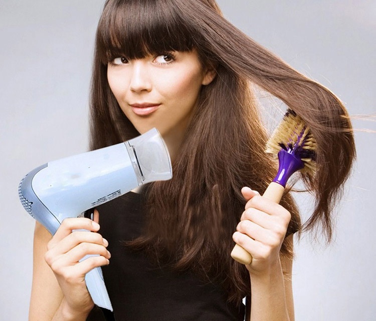 Nhiệt độ cao từ máy sấy tóc, hoặc các loại máy ép, duỗi tóc có thể làm hỏng protein cấu tạo nên sợi tóc cùng lớp biểu bì bảo vệ, từ đó phá vỡ cân bằng độ ẩm, làm cho tóc dễ bị gãy, rụng, chẻ ngọn. Để hạn chế tình trạng này, chỉ nên sử dụng máy sấy tóc khoảng 2 – 3 lần/ tuần và bắt đầu ở chế độ ít nóng. Ngoài ra, không để máy sấy quá gần tóc, ít nhất phải cách xa khoảng 15 cm, không sấy trực tiếp ở một chỗ quá 3 giây và dùng tay xới tóc liên tục trong khi sấy.