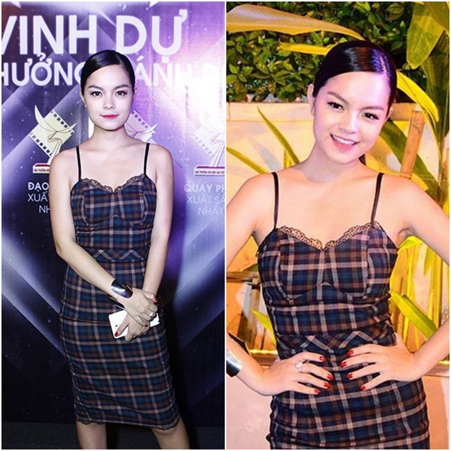 Bà mẹ một con Phạm Quỳnh Anh có cách chọn trang phục váy ngủ khá ổn nhờ họa tiết ca-rô hiện đại. Điểm nhấn nhá ren nhỏ tại ngực áo tăng sức hút quyến rũ, đặc trưng của phong cách thời trang mặc nhà.