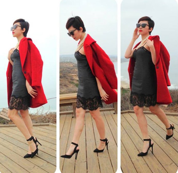 Tóc Tiên là một trong những tín đồ thời trang bắt nhịp nhanh với những xu hướng hot trên thế giới. Cô là một trong những sao Việt đầu tiên mạnh dạn diện mốt váy ngủ khi xuống phố. Hình ảnh chân dài mix váy ngủ cùng áo khoác măng-tô màu nổi, giày cao gót trở thành biểu tượng phong cách được nhiều ngôi sao học hỏi.