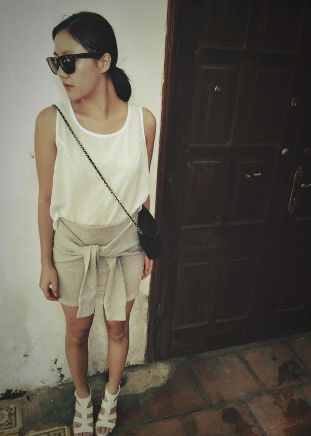 | Diễm My 9X khoe phong cách đời thường đơn giản với váy suôn gam trắng, đồng hồ cùng màu và đôi giày đế xuồng nổi bật làm điểm nhấn nhá cho bộ váy đơn điệu. |
