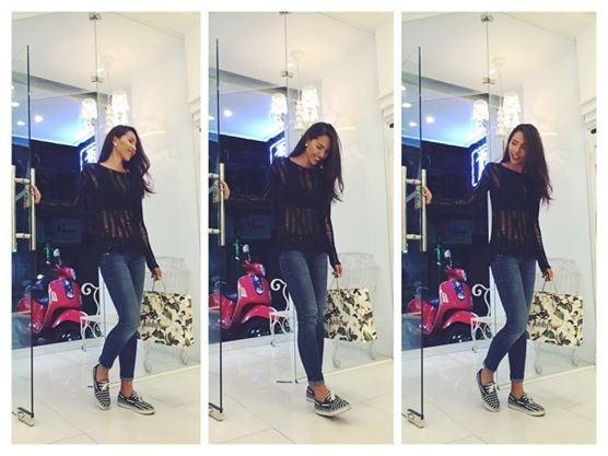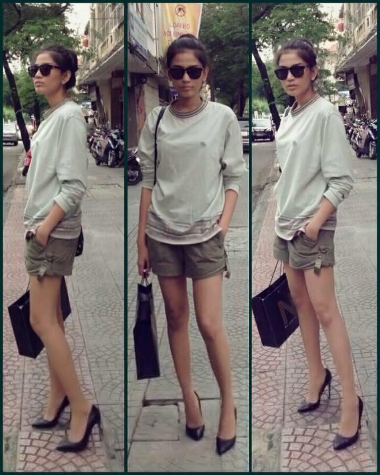 | Trong khi đó, Trương Thị May khá bình dân với áo vải kết hợp cùng quần shorts kaki. |