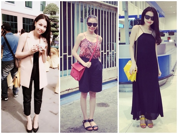 | Có mặt ở sân bay Tân Sơn Nhất, Diệu Huyền gây chú ý với hình ảnh sành điệu, cá tính. Trang phục áo hai dây khoe khéo vẻ quyến rũ mạnh mẽ. |