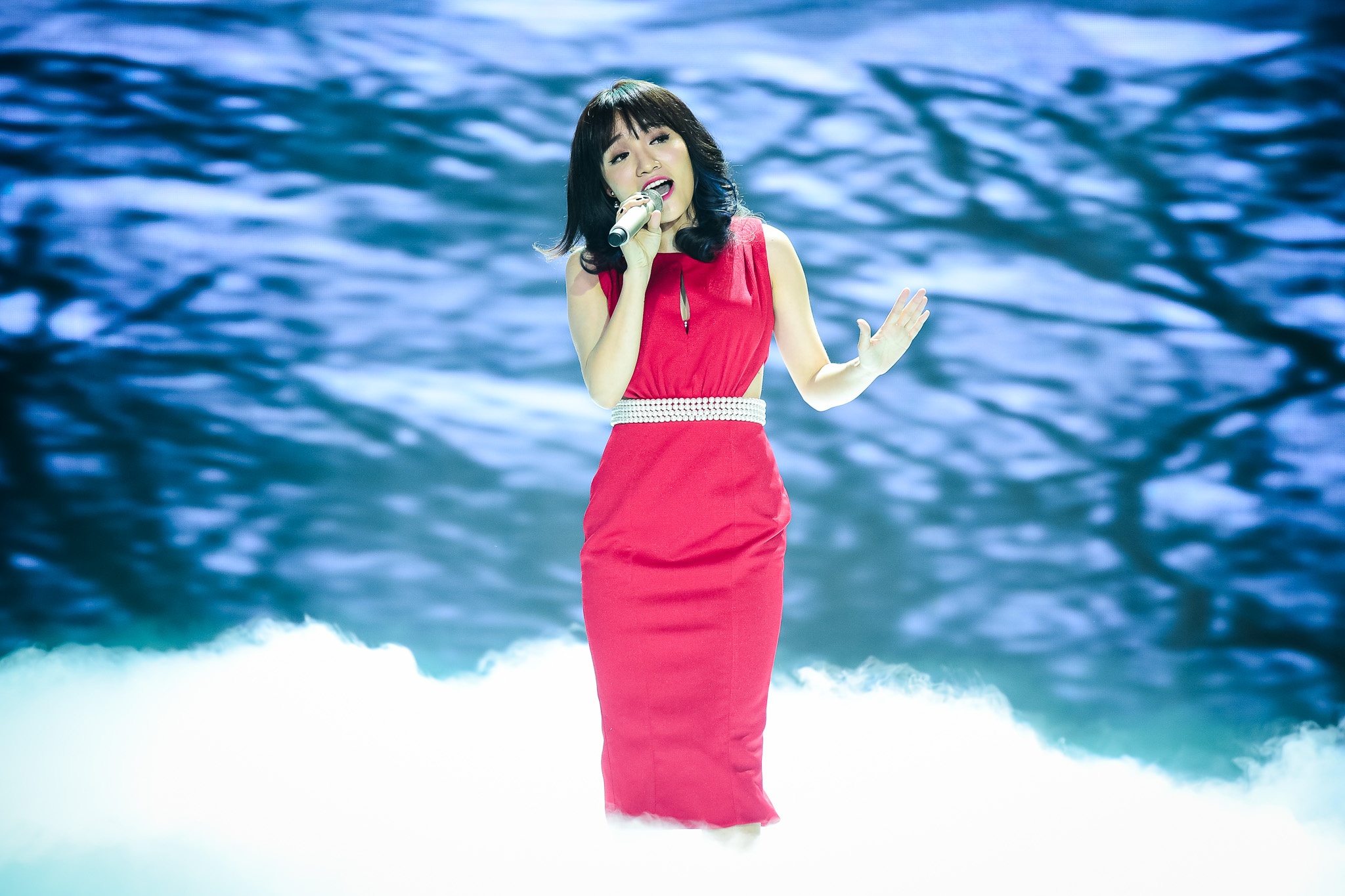 Trái ngược với vẻ sôi động, cuồng nhiệt của Tóc Tiên, Thùy Chi đưa khán giả vào không gian thơ mộng với giọng hát trong trẻo qua sáng tác của Đức Trí: Sương tan. Nhạc sĩ nổi tiếng còn đệm đàn piano cho giọng ca trẻ. |
