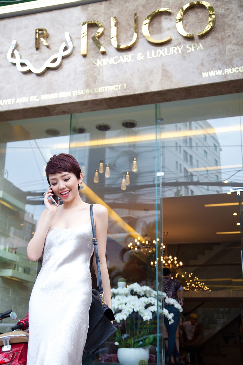 Để giữ ngoại hình nổi bật trên sân khác, nữ ca sĩ chăm sóc làn da trắng mịn với liệu trình mới tại Ruco Spa.