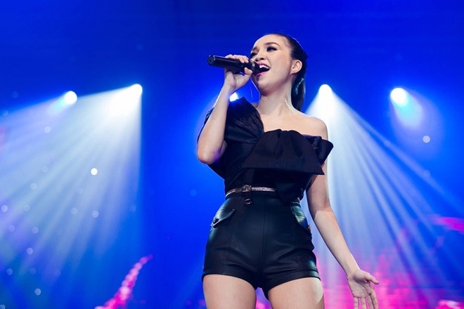 Nữ ca sĩ hải ngoại Tóc Tiên lại khiến người hâm mộ ''đứng ngồi không yên'' khi diện một bộ cánh cắt xẻ táo bạo lộ những điểm hở gợi cảm tại thân áo và chân váy. Đây vốn là phong cách sở trường của giọng ca Tóc mây nên cô xuất hiện khá tự tin và không ngần ngại phát huy sở trường vóc dáng quyến rũ. Ảnh: Khoa Nguyễn