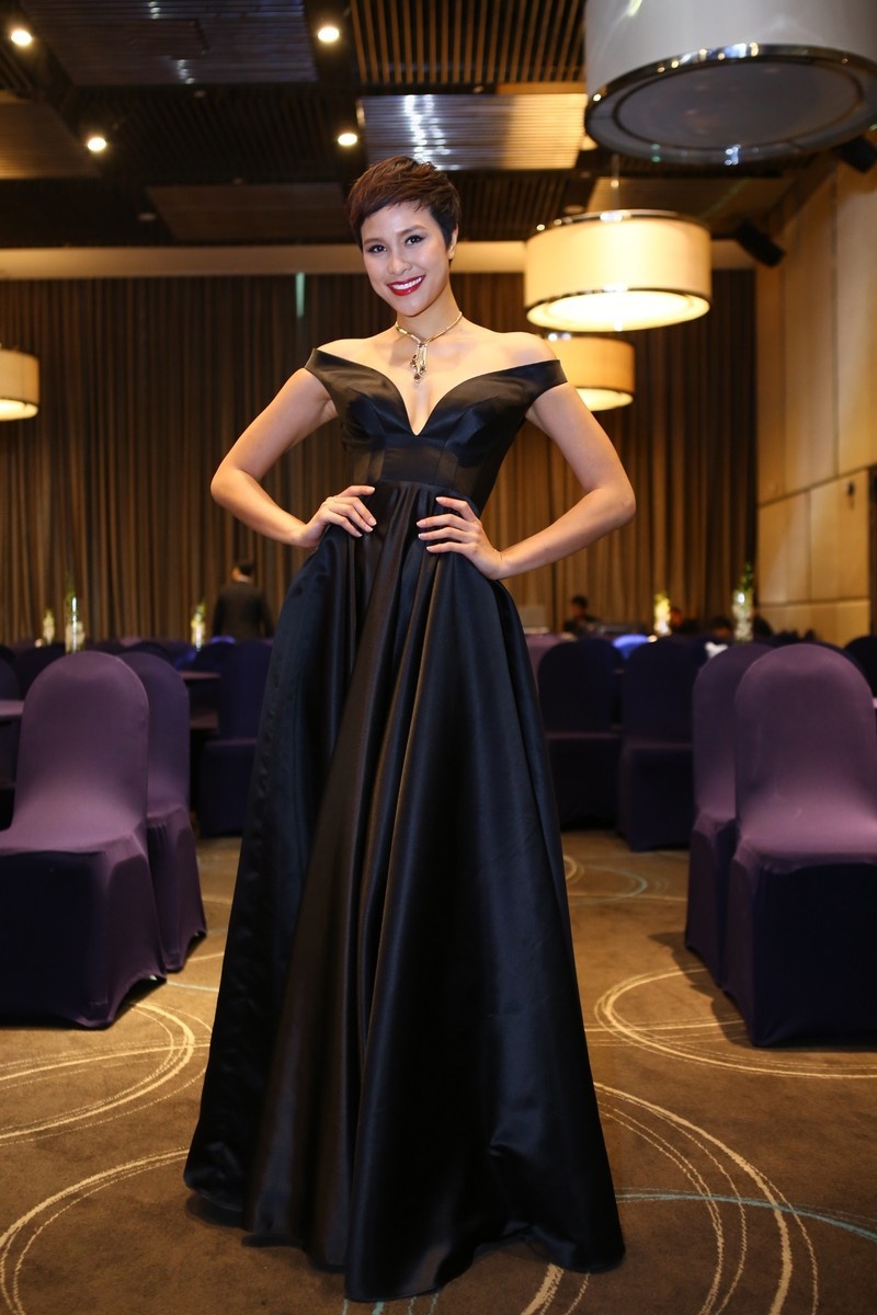 Nữ người mẫu cá tính Phương Mai bỗng dịu dàng và nữ tính khi diện chiếc đầm đen chất liệu mềm mại. Trang phục đẹp có điểm nhấn gợi cảm tại vai và ngực áo. Thiết kế màu trơn đơn giản nhưng lột tả được hình ảnh sang trọng của người mặc. Ảnh: Khoa Nguyễn
