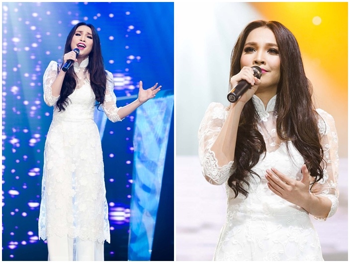 Hiền Thục nhận được nhiều lời khen về gu thời trang tại đêm liveshow Dấu ấn. Chiếc áo dài ren tinh tế là một trong những bộ cánh nền nã giúp bà mẹ một con đáp ứng được phần nhìn khi thể hiện các ca khúc trữ tình. Ảnh: An Trần