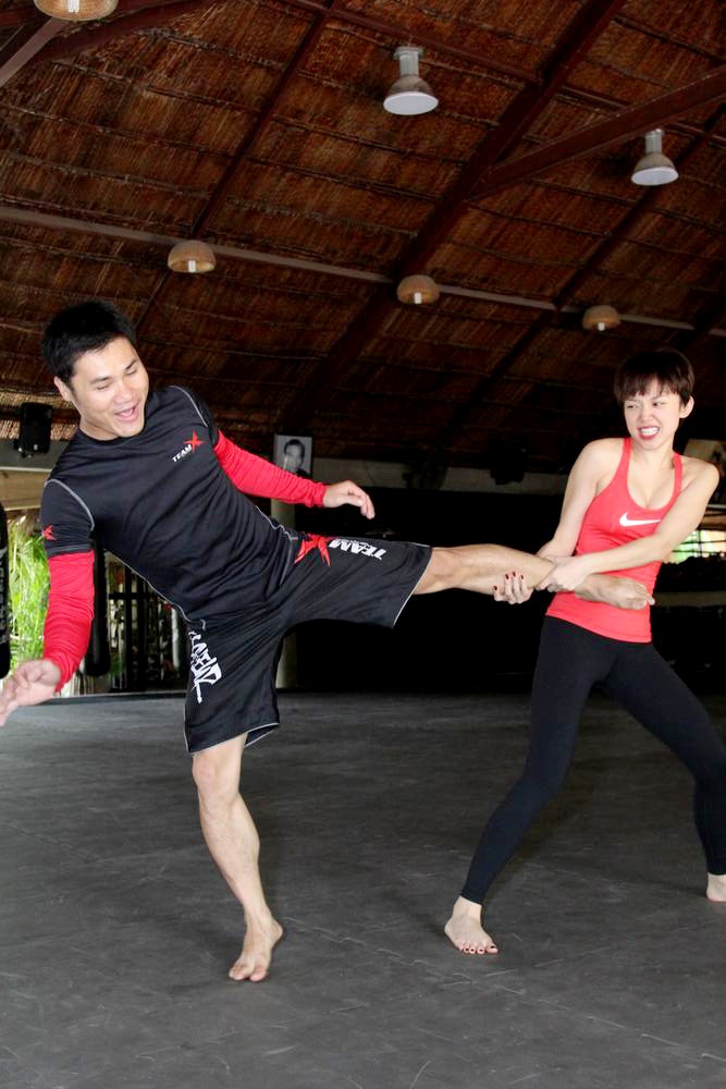 Nữ ca sĩ "Vũ điệu cồng chiêng" tích cực tới sàn võ tập luyện cho những pha hành động trong phim "Già gân, mỹ nhân và găng tơ".