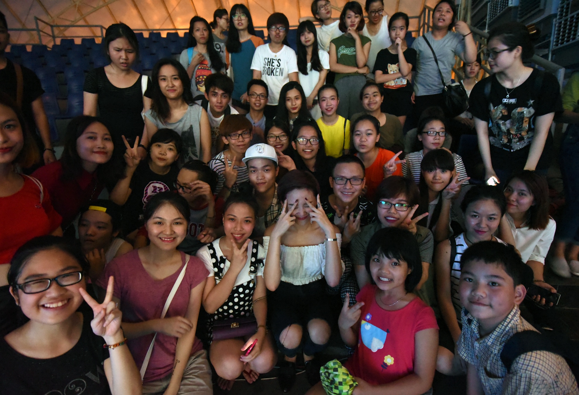 | Các fan sẽ hỗ trợ cô để tạo thành màn flashmob hoành tráng. Phần trình diễn này được lên ý tưởng và dàn dựng bởi đạo diễn Việt Tú. |