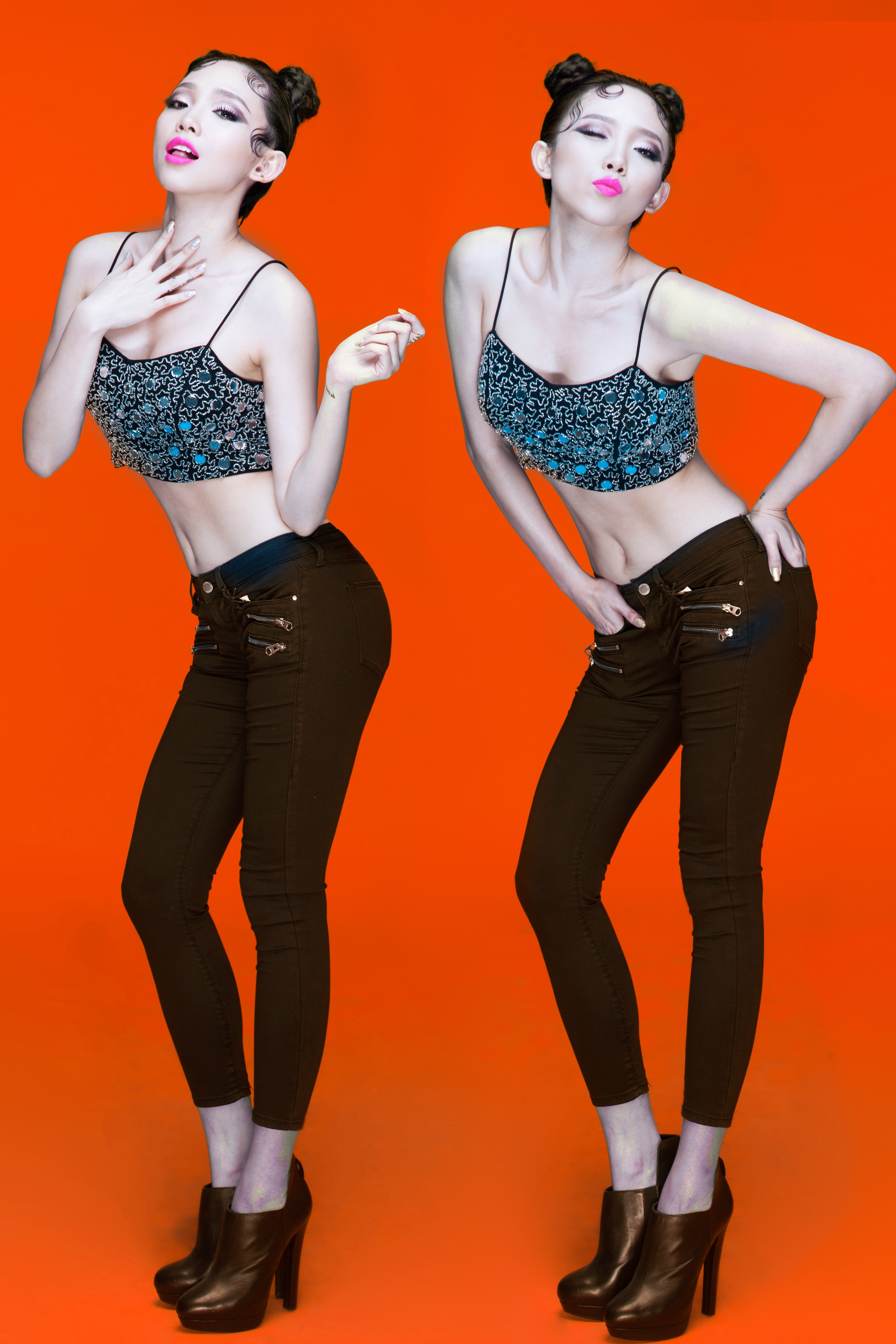 | Một số người nhận định, hình ảnh mới của Tóc Tiên giống với ngôi sao ca nhạc Miley Cyrus. Nữ ca sĩ phủ nhận điều đó và khẳng định: "Chẳng có nghệ sĩ nào thích bị so sánh với người khác, dù đó là siêu sao thế giới. Tôi rất thích Miley vì cô ấy là một người tài năng và cá tính. Nhưng tôi chưa bao giờ có ý định trở thành bản sao của bất cứ ai". |
