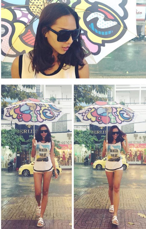 | Người mẫu Minh Triệu khỏe khoắn trong bộ cánh thể thao hiện đại, năng động. Quần short ngắn giúp cô khoe khéo đôi chân dài và làn da nâu khỏe. |