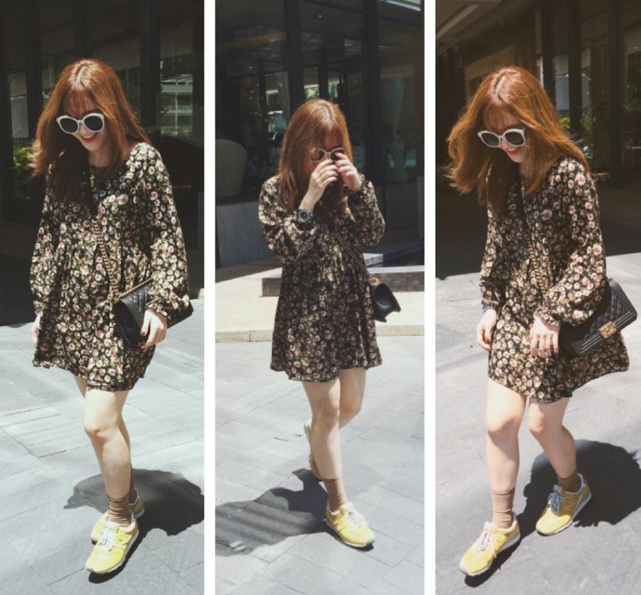 | Yến Nhi nữ tính trong bộ đầm họa tiết hoa nhí nhỏ xinh, cổ điển. |