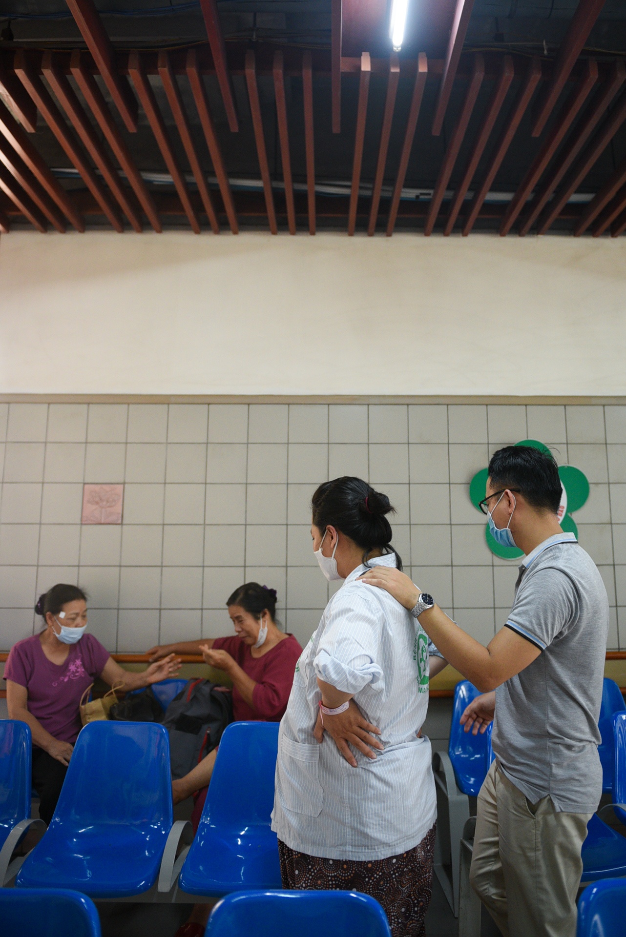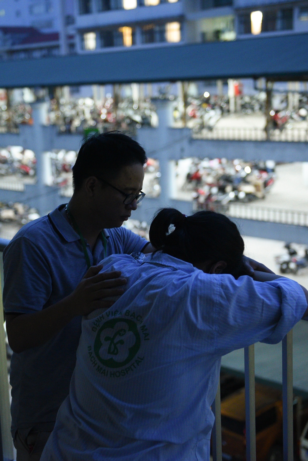 | Những ngày này, Bệnh viện Bạch Mai hạn chế người ra vào. Mọi người đều tuân thủ đeo khẩu trang, đo nhiệt độ và rửa tay bằng nước sát khuẩn. Vì số lượng người chăm bệnh bị hạn chế, chỉ có chồng ở lại cùng tôi. |