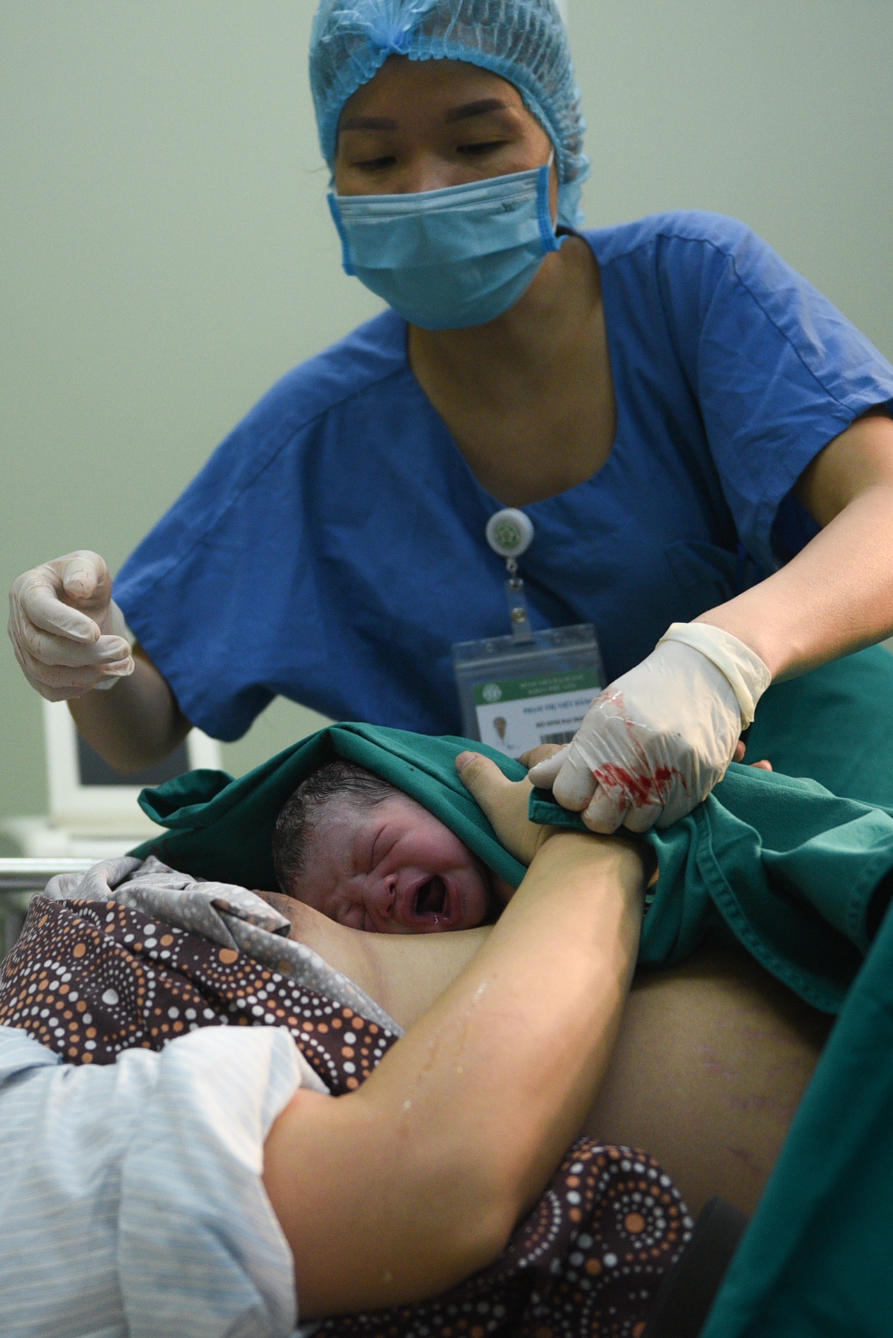 | Gần 2 tiếng trong phòng đẻ, tôi vẫn chưa thể sinh. Tôi đuối dần và phải thở oxy. Xung quanh tôi, mọi người vẫn liên tục động viên tinh thần: “Không sao, em rất mạnh mẽ mà. Cố thêm chút nữa rồi em và con sẽ được gặp nhau”. Đúng 22h55, tiếng khóc đầu tiên của con cất lên. |