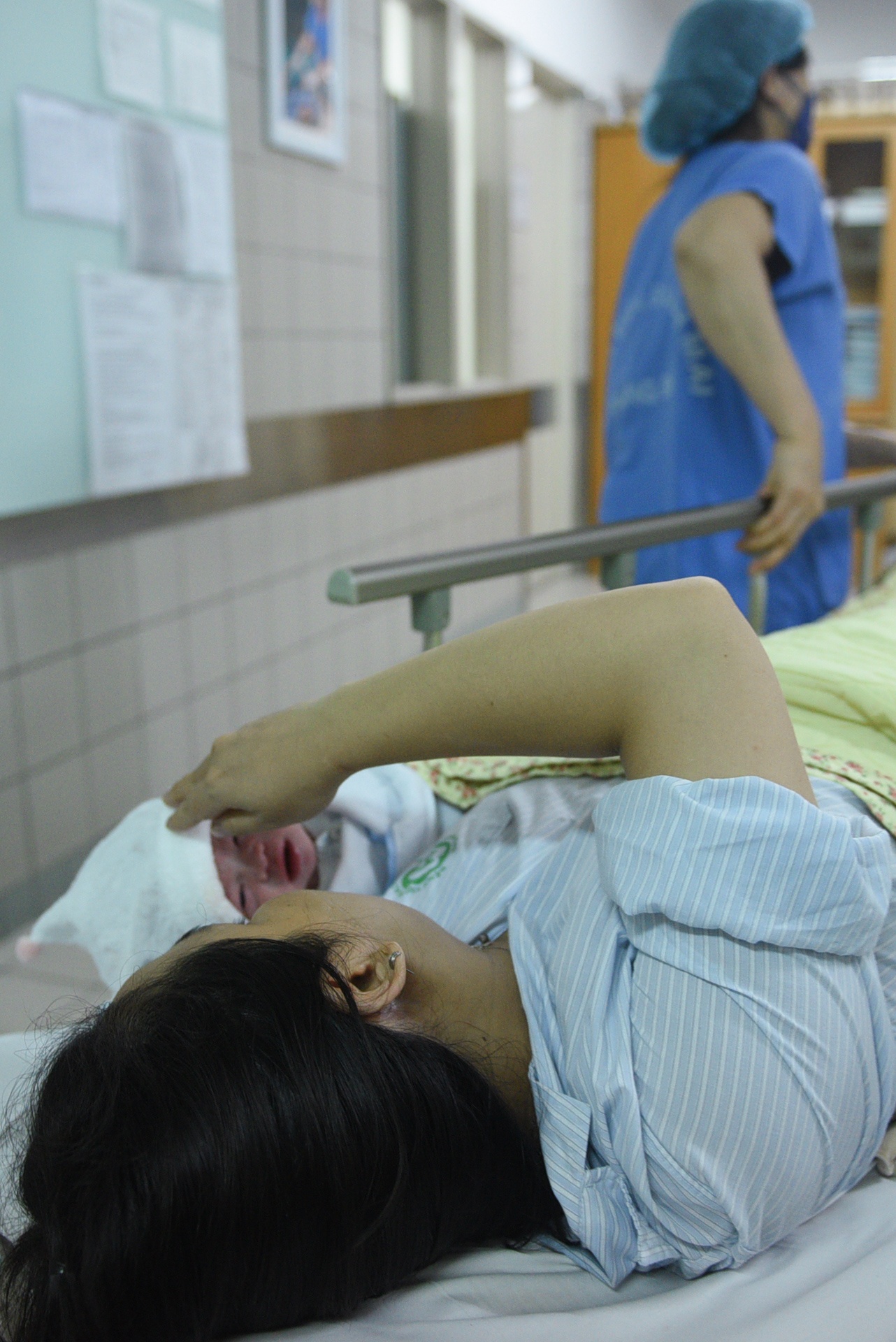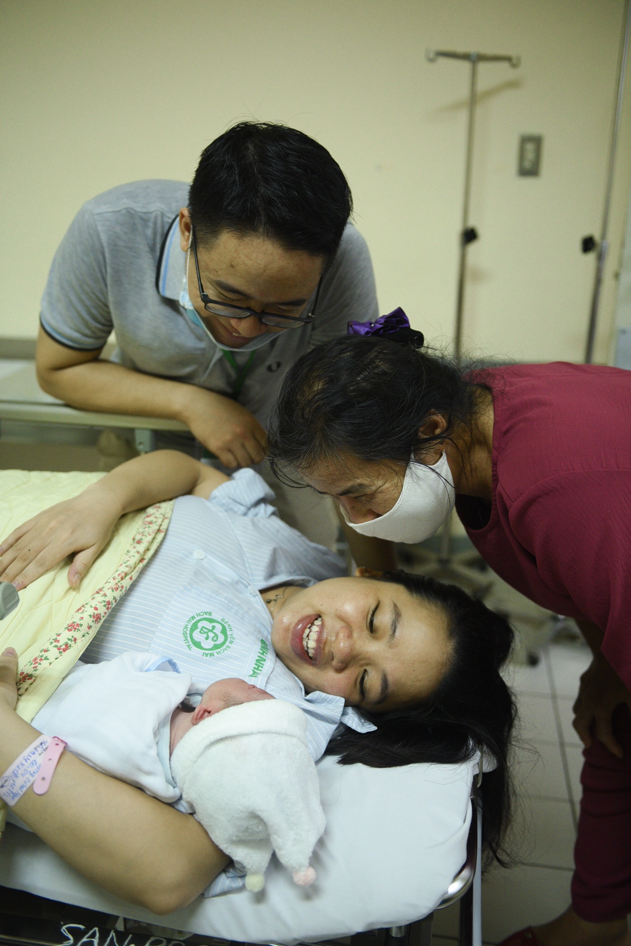 | Sau khi làm thủ thuật và vệ sinh, hai mẹ con được di chuyển sang phòng hậu sinh. Mọi người được phép vào thăm một lúc. |