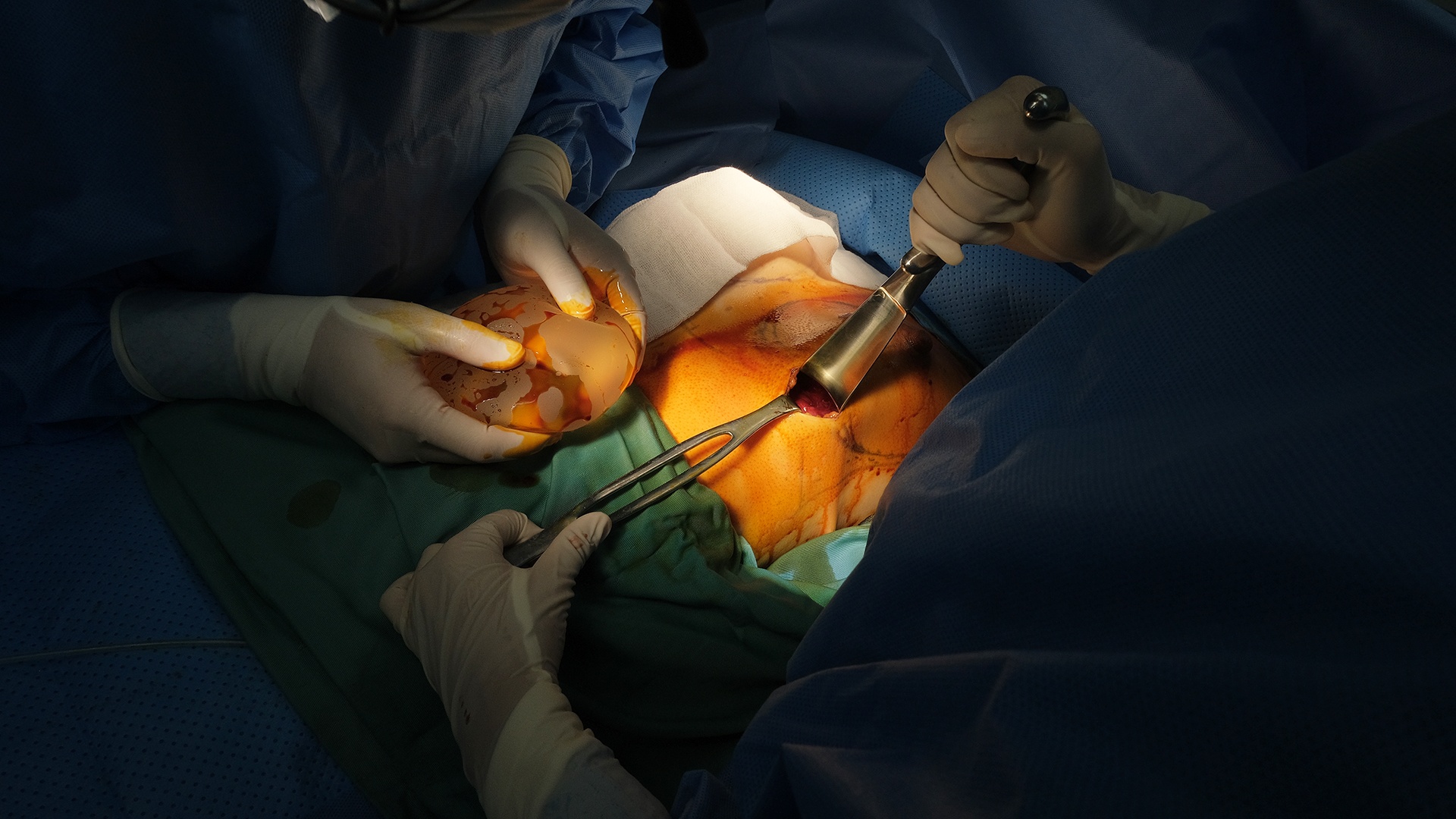 | Lúc này, bác sĩ Minh sẽ tiến hành rạch các đường đã vẽ trước phẫu thuật, bóc khoang đặt túi ở dưới cơ ngực lớn và đặt túi ngực ngay sau đó. |