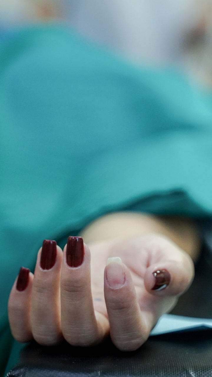 | Công việc phẫu thuật được diễn ra trong phòng vô trùng nên tôi phải để mặt mộc đồng thời tẩy sơn móng tay ngón trỏ để khi kẹp kiểm tra sinh tồn, tia hồng ngoại mới chiếu qua được. |