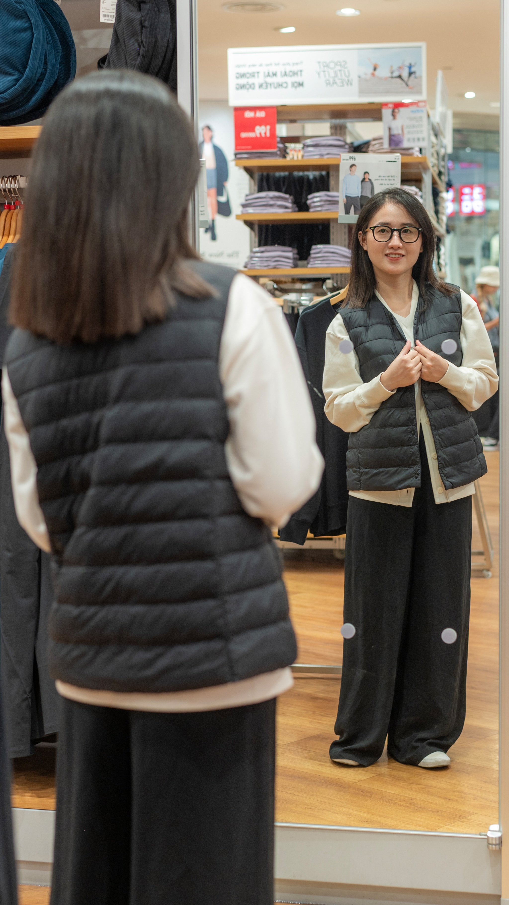 | Theo đuổi phong cách thời trang tối giản giống nhiều người trẻ hiện đại, tôi chọn Uniqlo là thương hiệu “ruột”. Cách nhà chưa tới 2 km, cửa hàng Uniqlo tại Vincom Phạm Ngọc Thạch (Đống Đa, Hà Nội) cũng là địa chỉ thường xuyên lui tới của tôi. |