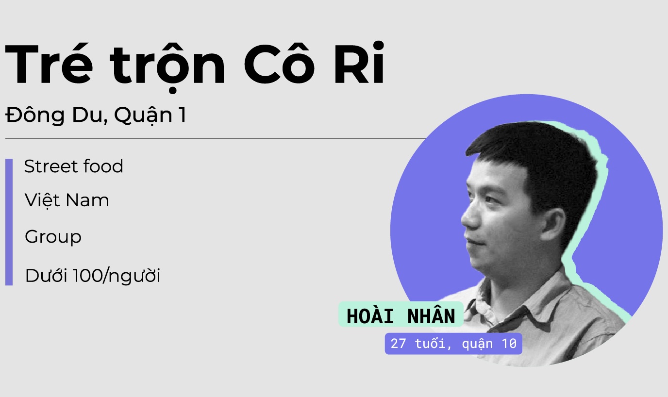 Phần tré khá đầy đặn, nước sốt pha sền sệt, đậm đà và thơm. Với lại, chỗ này đúng gu tôi khi trộn tré với cóc giòn và trứng cút. Cô Ri bán hàng tay thoăn thoắt cắt đôi quả trứng cút, ai hỏi gì cũng trả lời tận tình nên nhiều người quay lại.